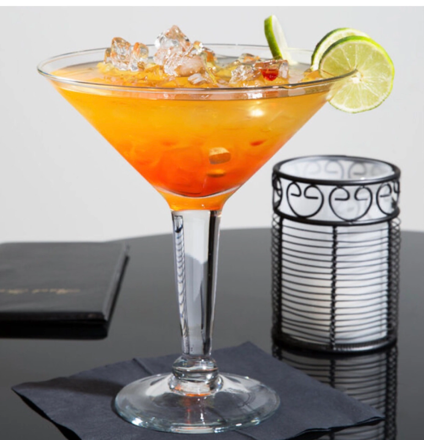 Tall, clear jumbo glass martini glass. Perfect for serving cocktails, snacks, or even as a vase.