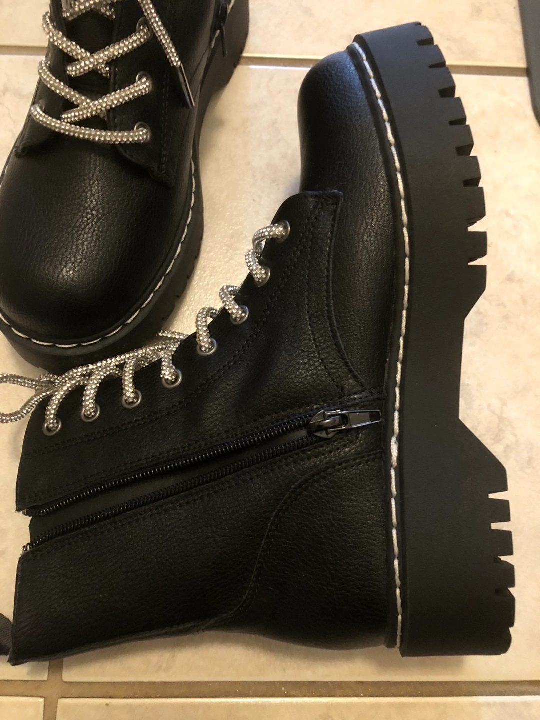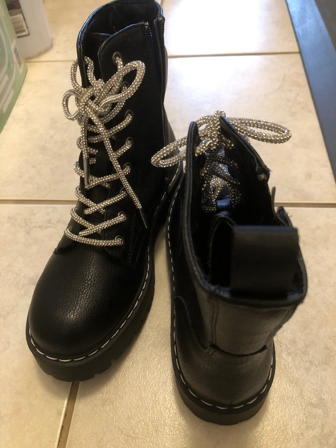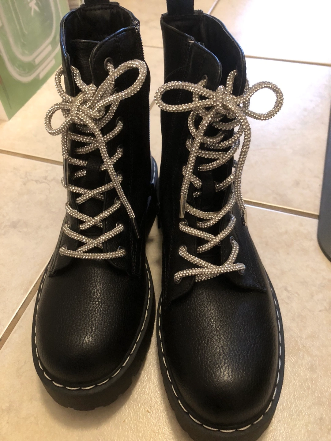 Black platform boots with rhinestone laces. Side zipper. Size 6.5 Brand new