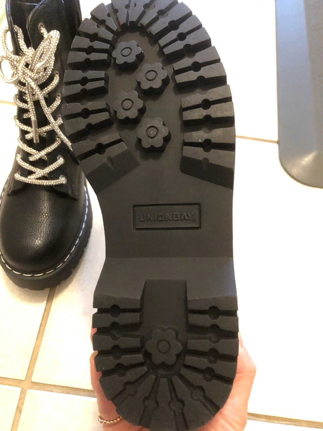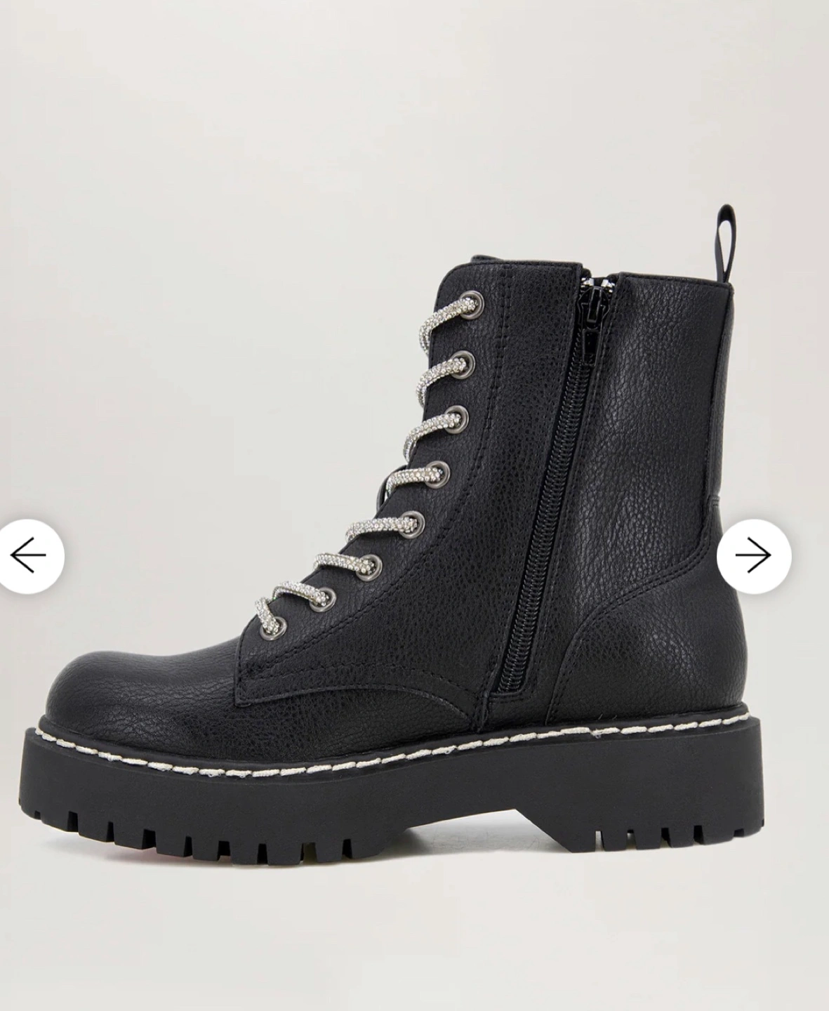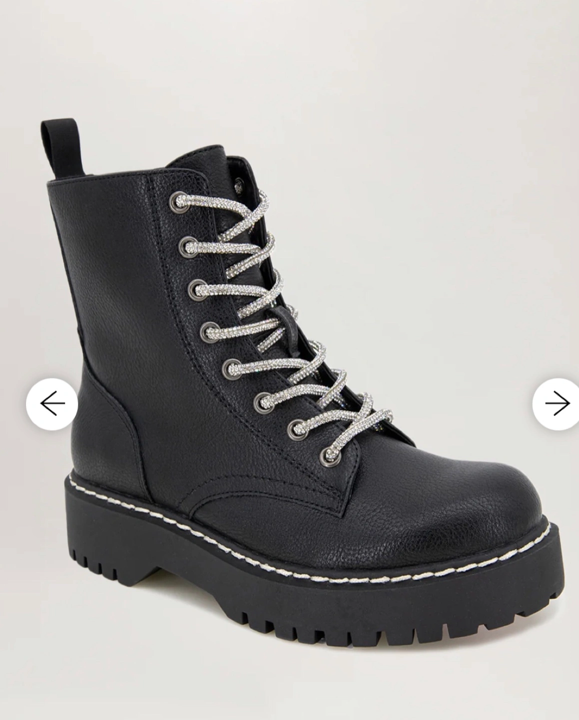 Black platform boots with rhinestone laces. Side zipper. Size 6.5 Brand new