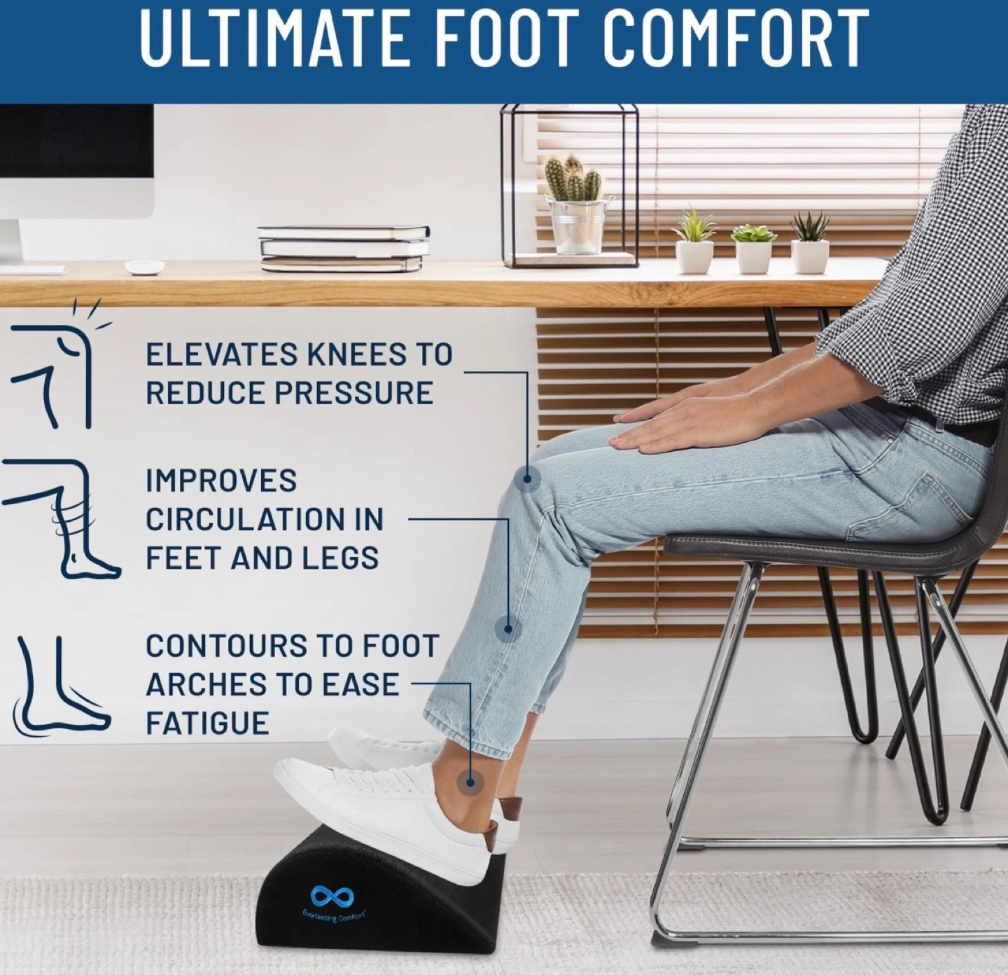 438Ergonomically designed foot rest. Contoured to support foot arches. 100% memory foam, machine washable cover. Ergonomic Footstool for Under Desk: Elevate your comfort at work or home with our teardrop-shaped under desk footrest, designed for optimal back & foot support, improving posture and reducing fatigue. Premium Material: Experience lasting comfort with our high-density memory foam under desk foot rest, providing support that is soft yet firm enhancing comfort and posture. Multipurpose Design: More than a footrest under desk, our product can be flipped for rocking, helping in active sitting and circulation, ideal for both office and gaming setups. Circulatory Health Support: Promote better blood flow and well-being by elevating your legs with our under desk foot rest, crucial for those long hours of working or gaming. Easy Maintenance: Features a removable, machine-washable cover, making it easy to keep your footrest under desk fresh and clean, making it the ideal office accessory. Rfs: moving out Comes from pet and smoke free home 25,711+ 4.5 stars in amazon reviews Retails for 49.99cad plus tax Yours for only 20cad Price is firm