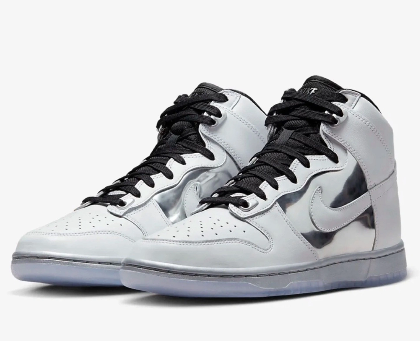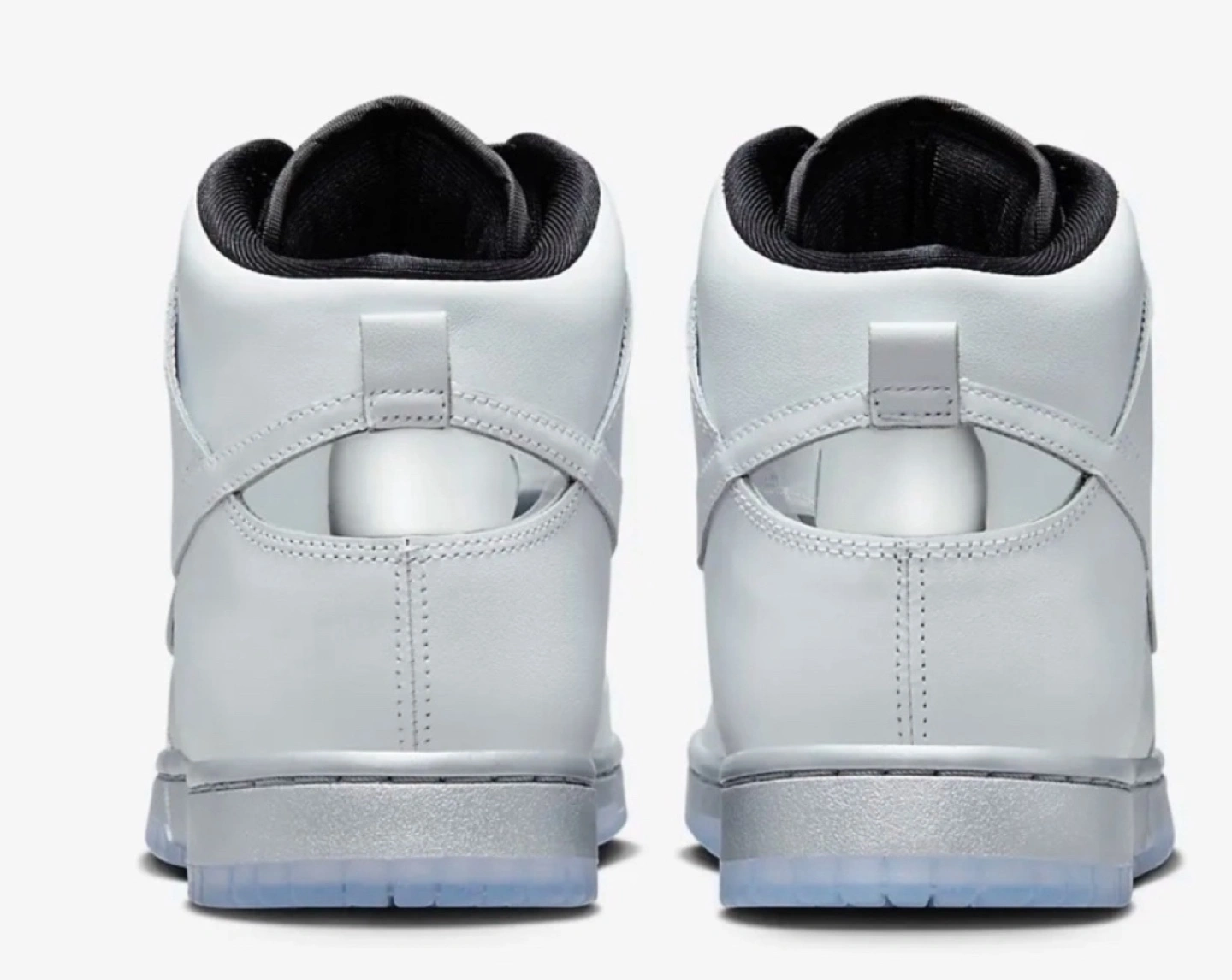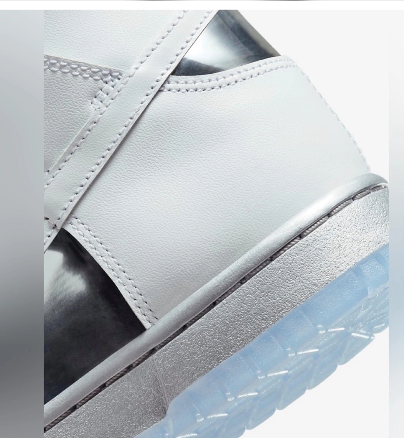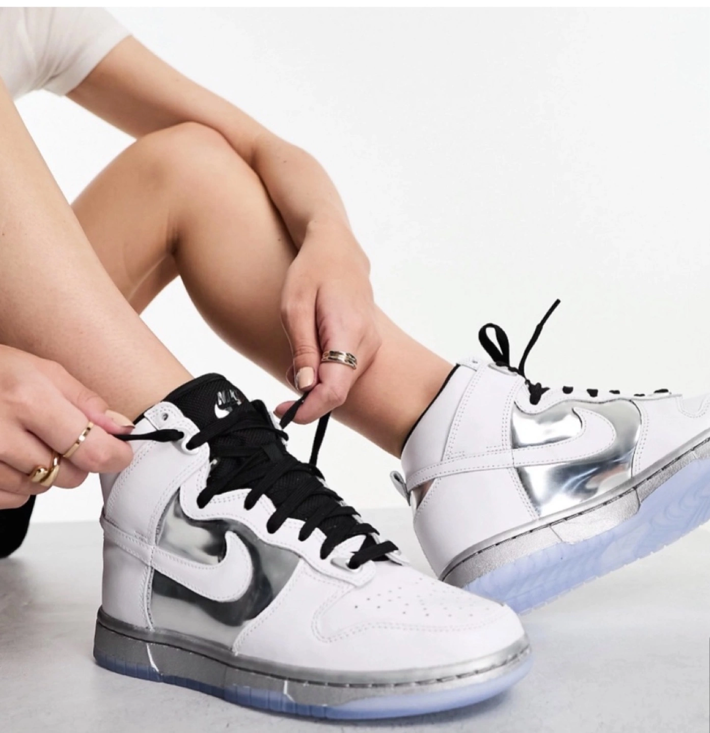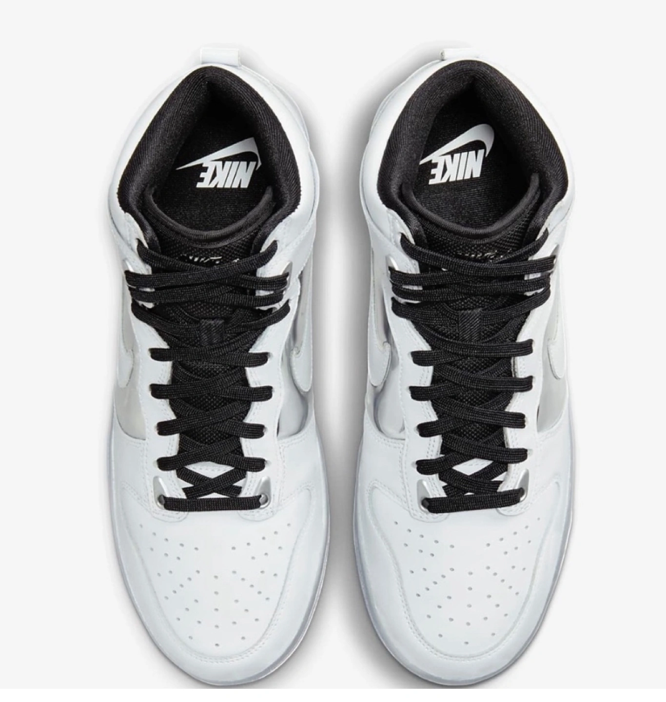 White and silver high-top sneakers with black laces. Transparent outsole. Never worn, comes in original box Comes with both black & white laces Sold out style!