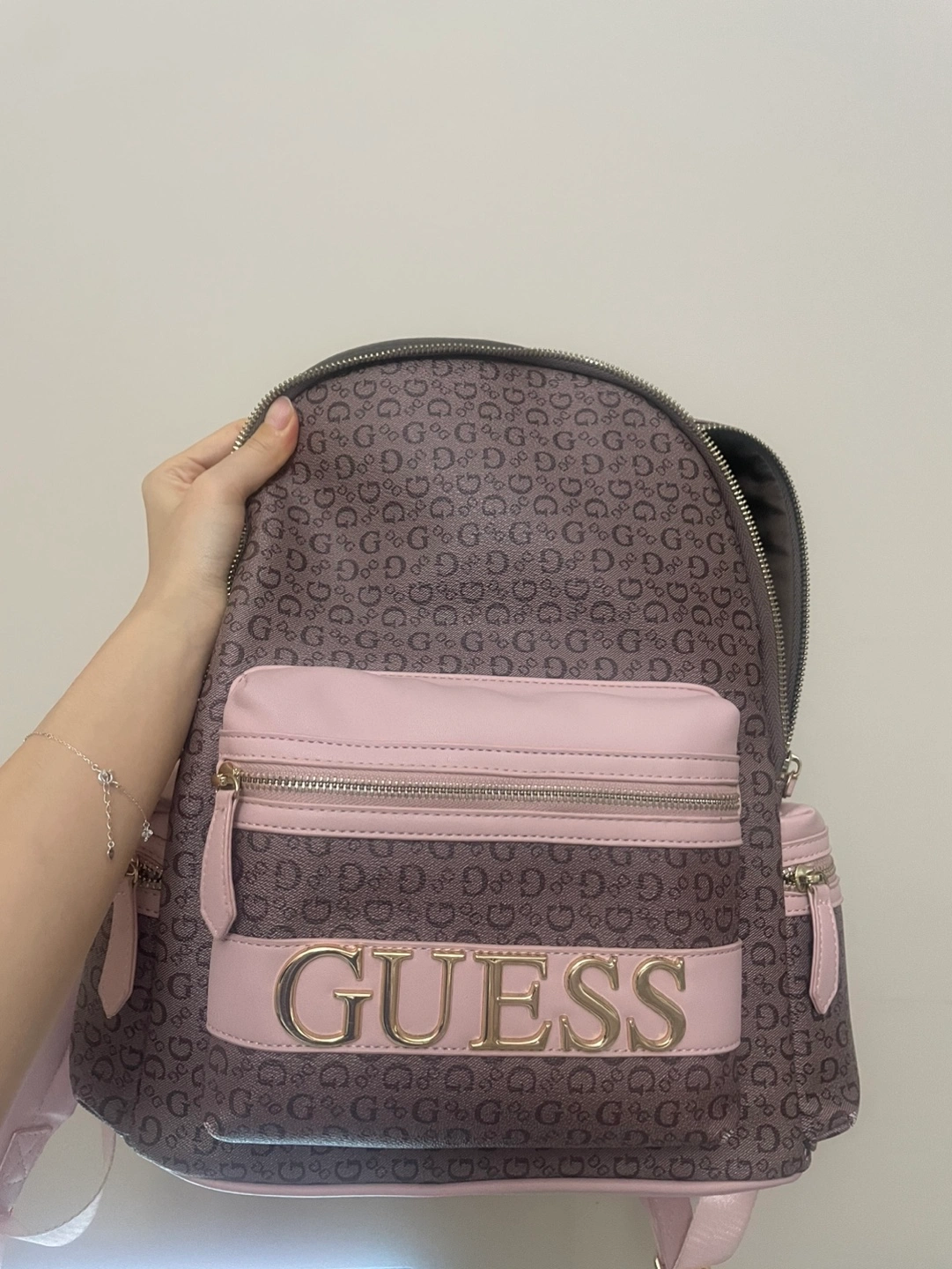 Pink Guess backpack. Has multiple pockets and a spacious main compartment. Great for school or everyday use. Condition is good