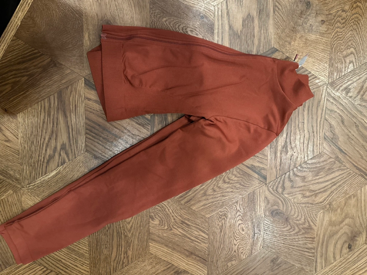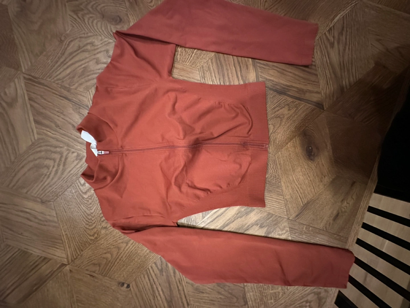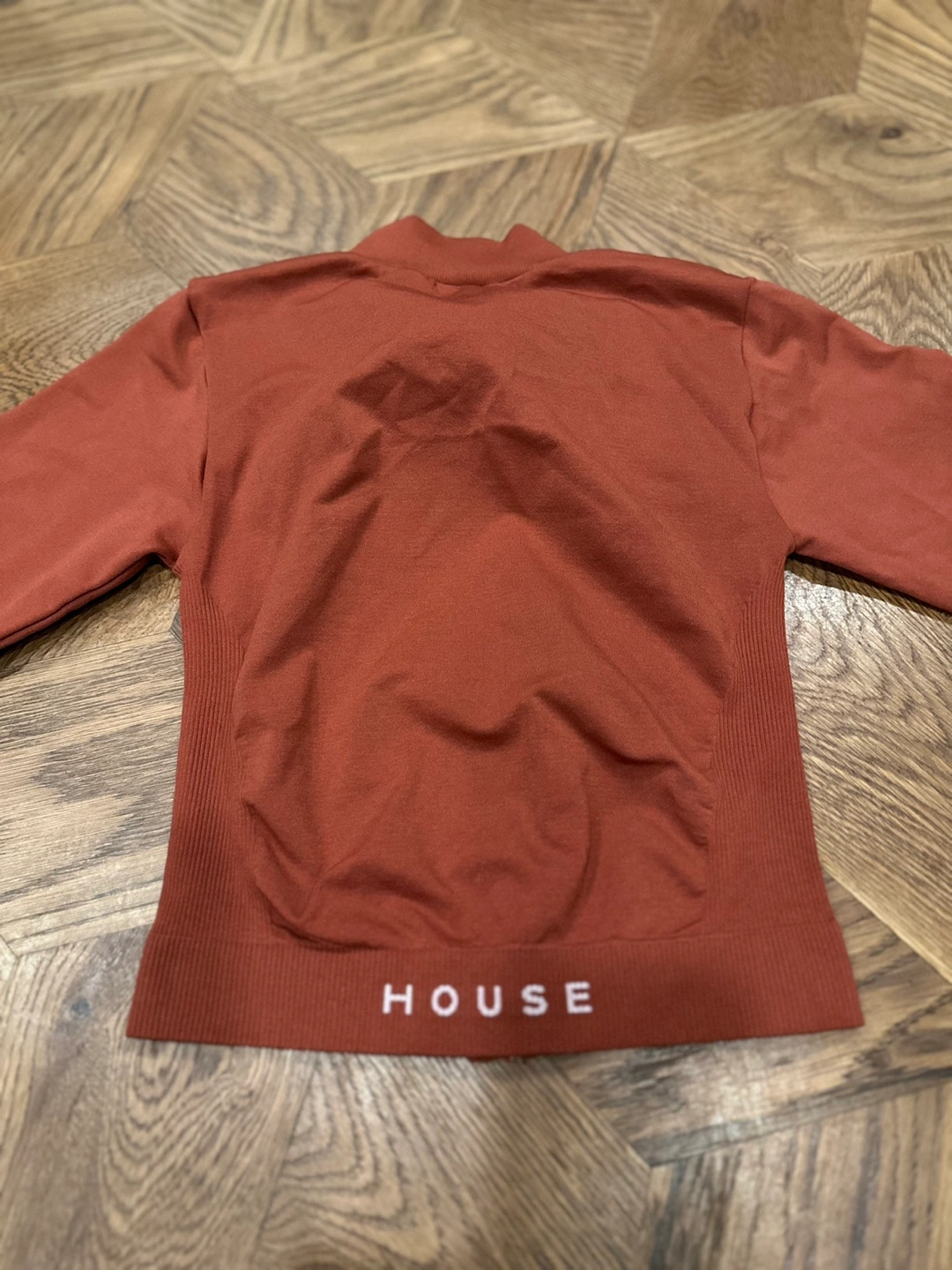 Long sleeve zip up top. Rust colour. Size S.