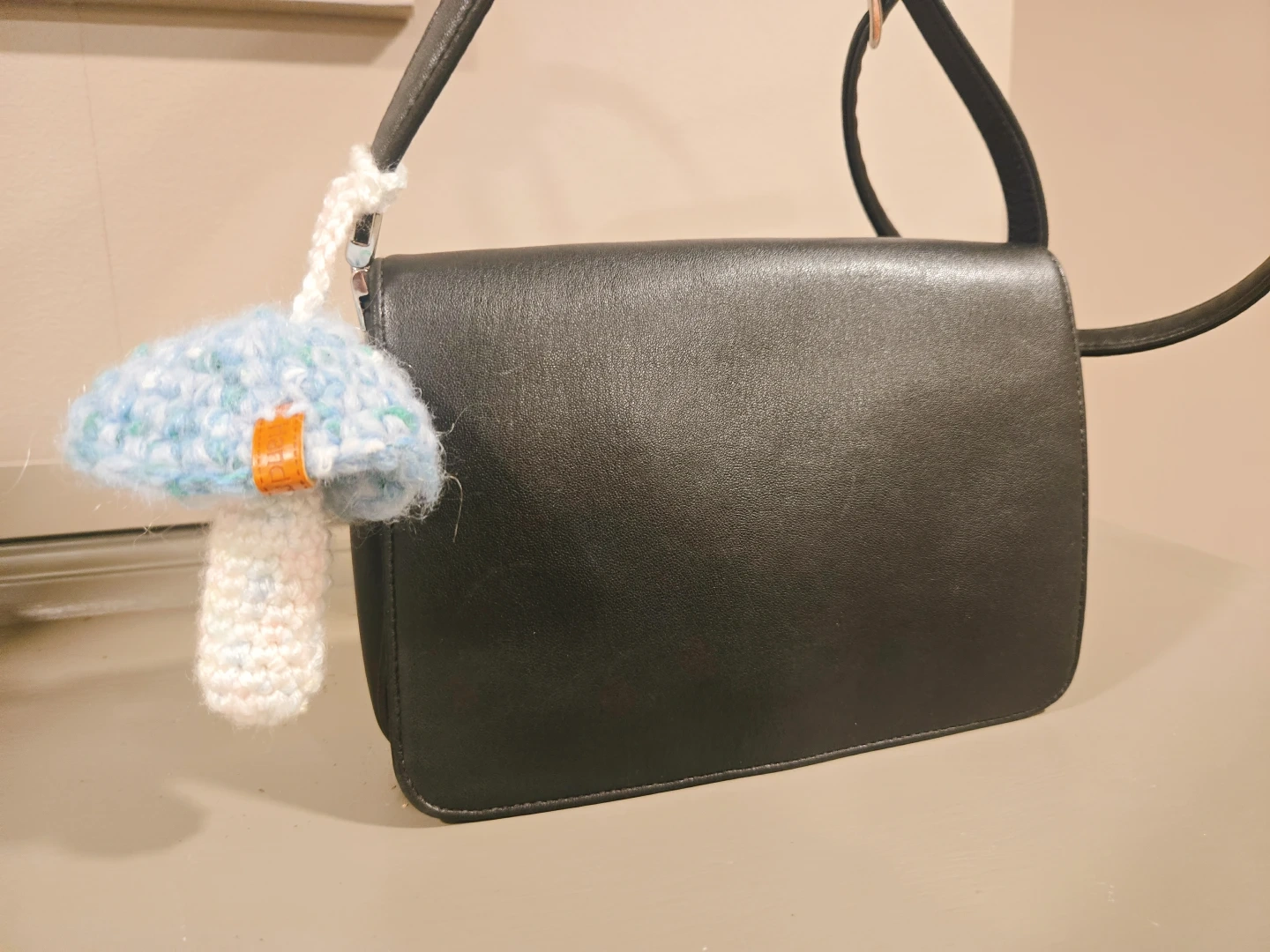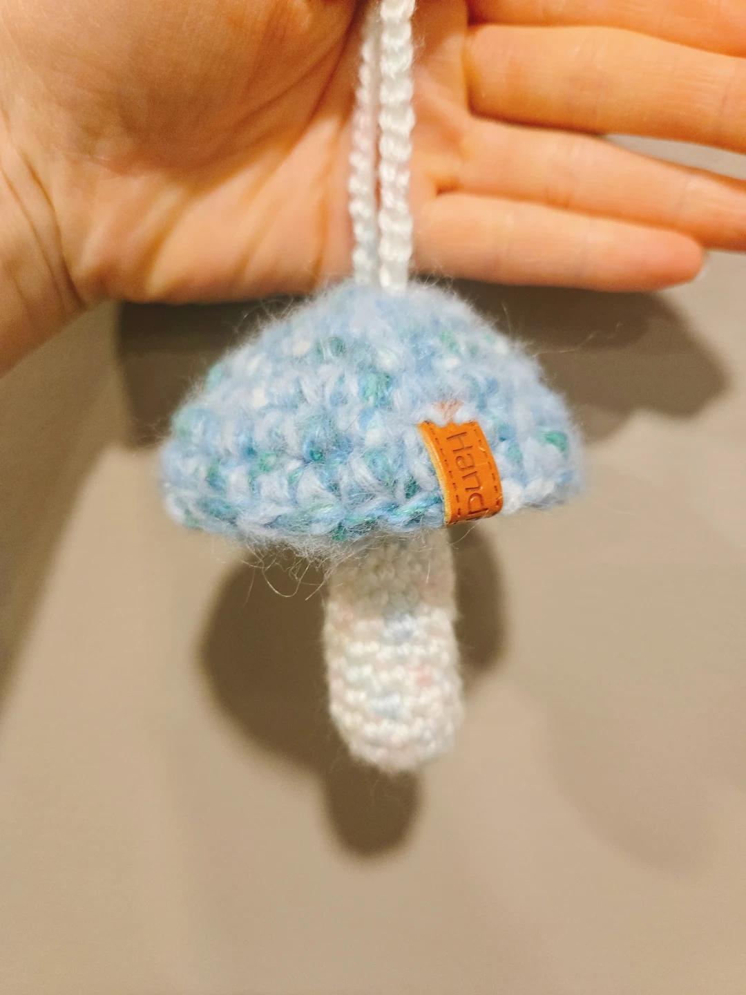 This handmade lip balm case is not only adorable but also a practical accessory, perfect for keeping your lip balm handy! Crafted with care, this case features a charming mushroom design with a delightful blue cap and a cozy, crocheted texture. It's in new condition! It would look perfect hang on to your purse or backpack.