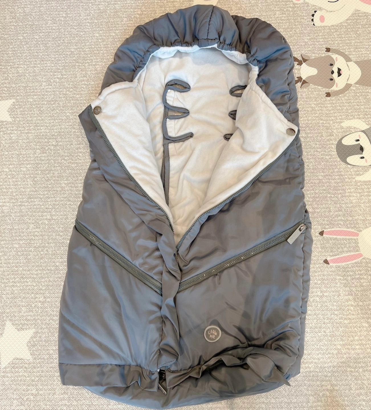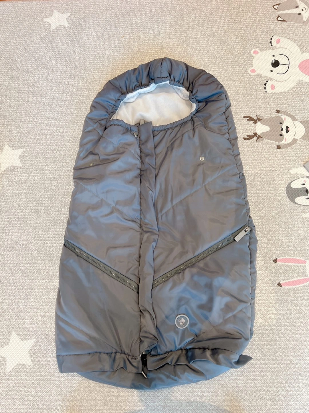 Excellent condition Warm bag for stroller. Also called a bunting bag, snuggle bag, footmuff. It will fit from baby to toddler years! It also has 2 zippered pockets to put pacifier or other stuff. Little Me brand ( from Nordstrom) Pick up Bayview and Finch