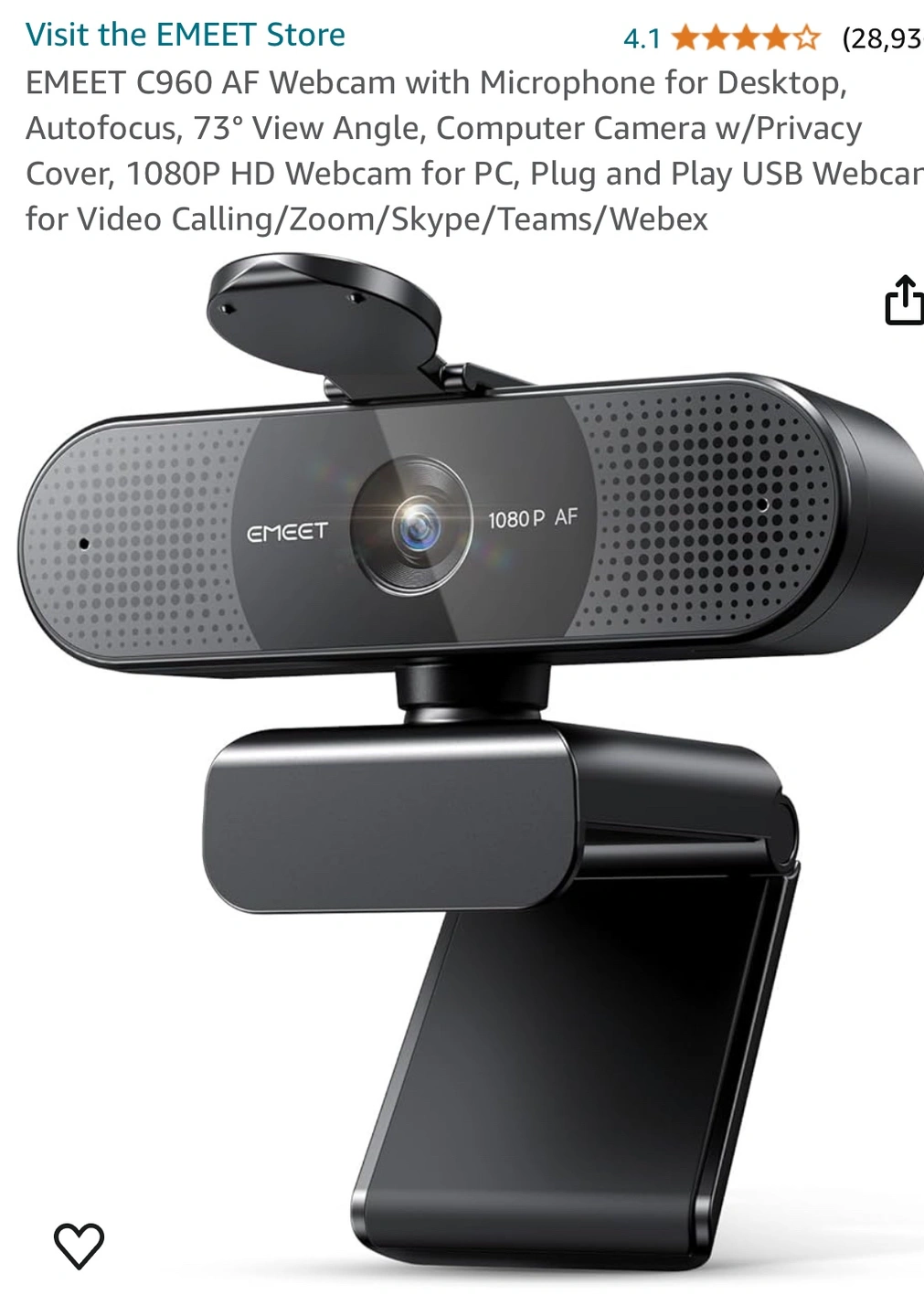EMEET C960 AF Webcam with Microphone