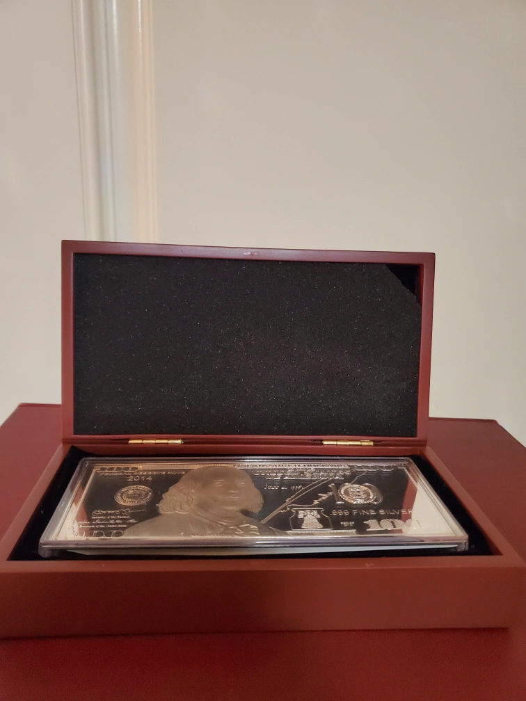 USA Collectable Benjamin Franklin Currency note. 1 ounce of .999 fine silver. #'d Collectable. 9,999 minted.