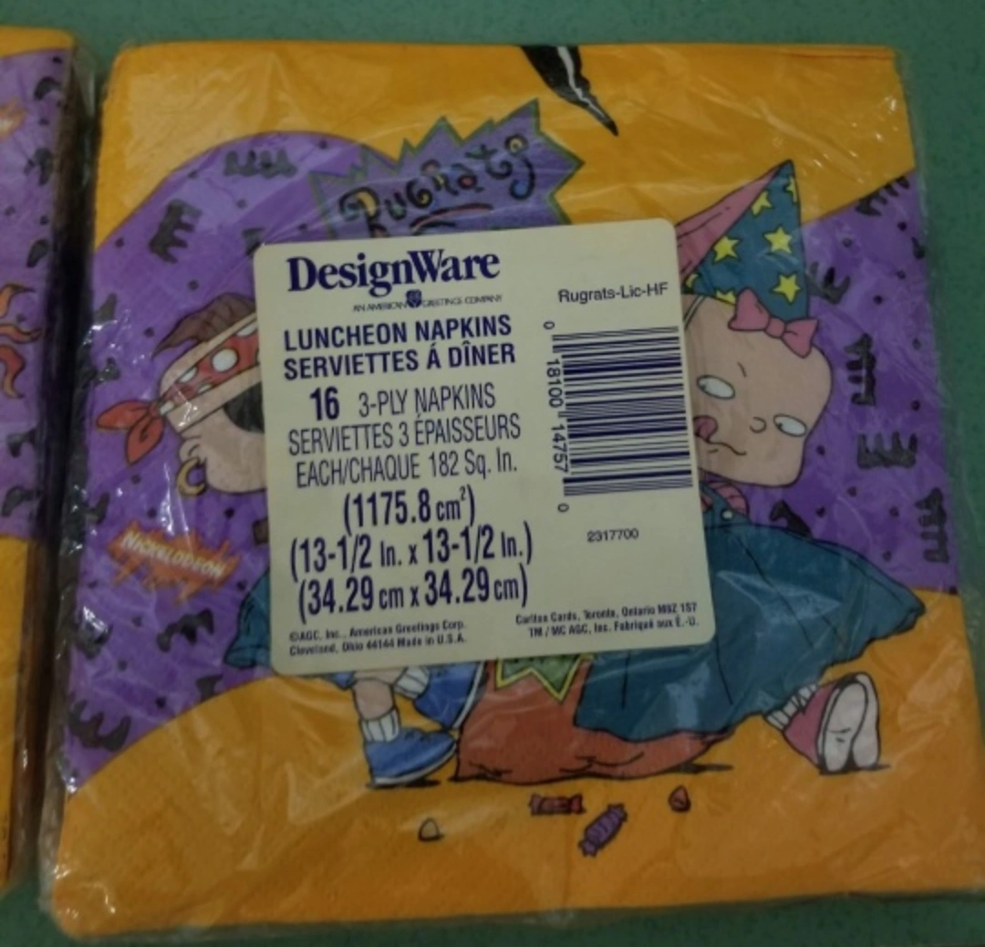 16 3-ply napkins, featuring Rugrats characters in Halloween costumes. New, unused. Unopened package.