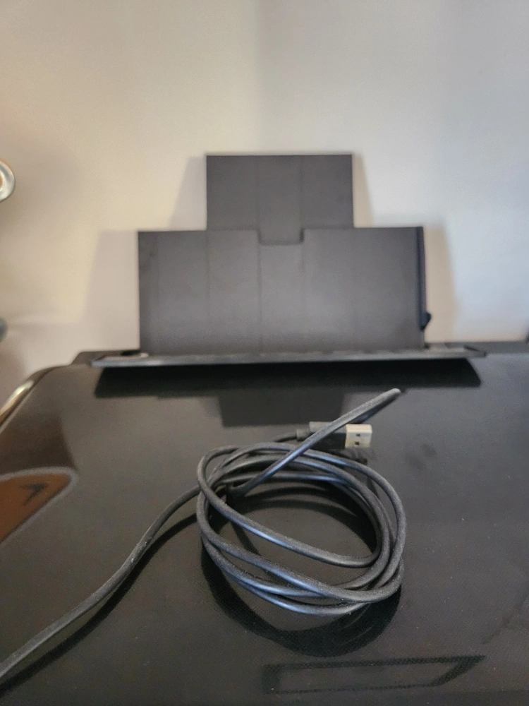 All-in-one printer, scanner and copier. Includes power cord and USB cable.