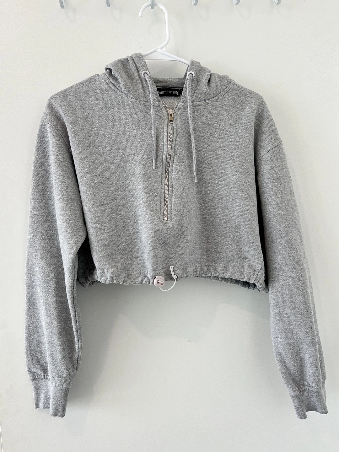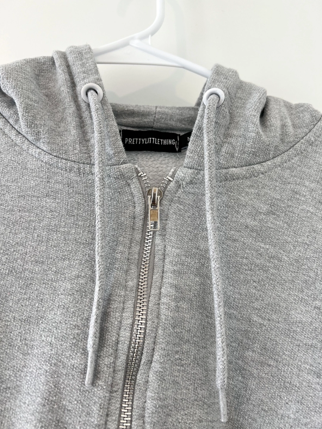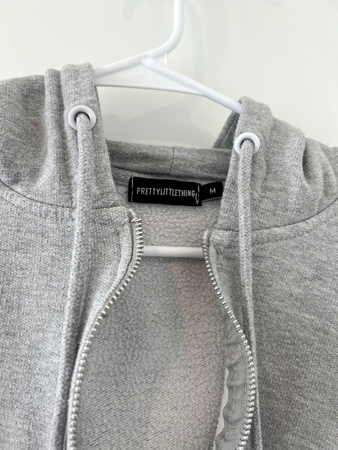 53PrettyLittleThing very cute grey hoodie with a zip front and a cropped fit. 50% cotton, 50% polyester Size M Never work. Condition is 10/10❤️ The price is negotiable. We can meet anywhere (GTA and Toronto), and shipping is available📦 You can try them on before buying :) Msg me for more details. Check out my other listings♥️ thanks.