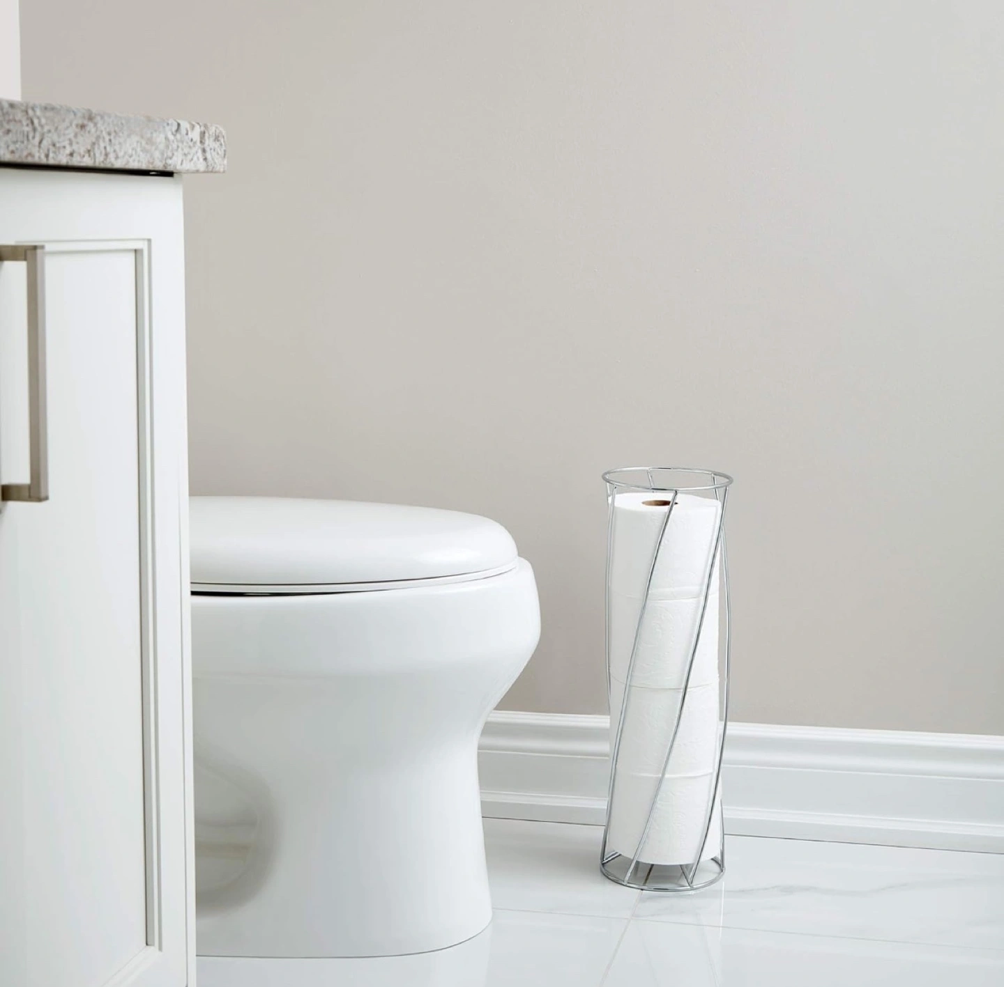 Conveniently store toilet paper rolls within reach