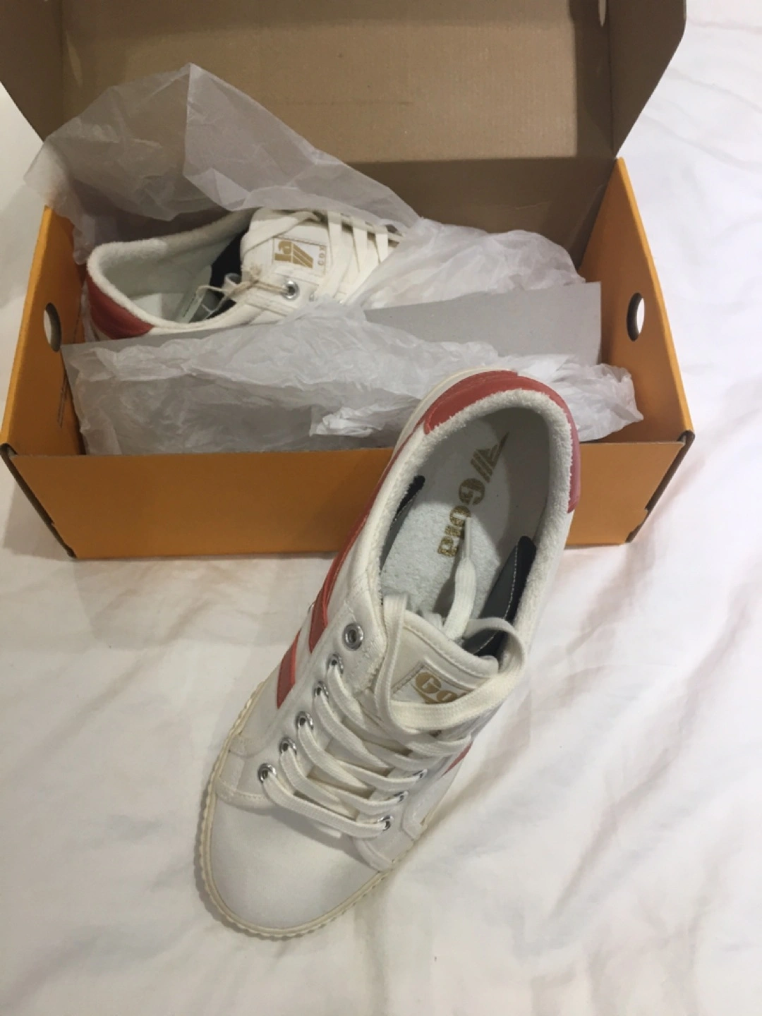 Brand new, in box - never worn because coral was wrong shade for me. I love Gola tennis shoes though and I have these in two other colours - very comfortable and I get lots of compliments. Reg $95 + tax. Non-smoking, Non-pet house. Pick up midtown and cash only please.
