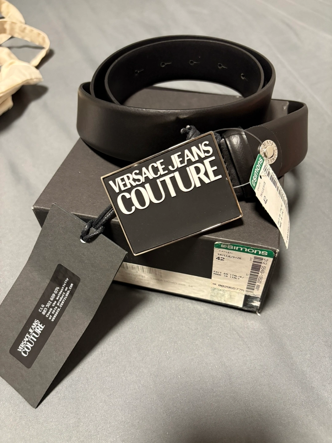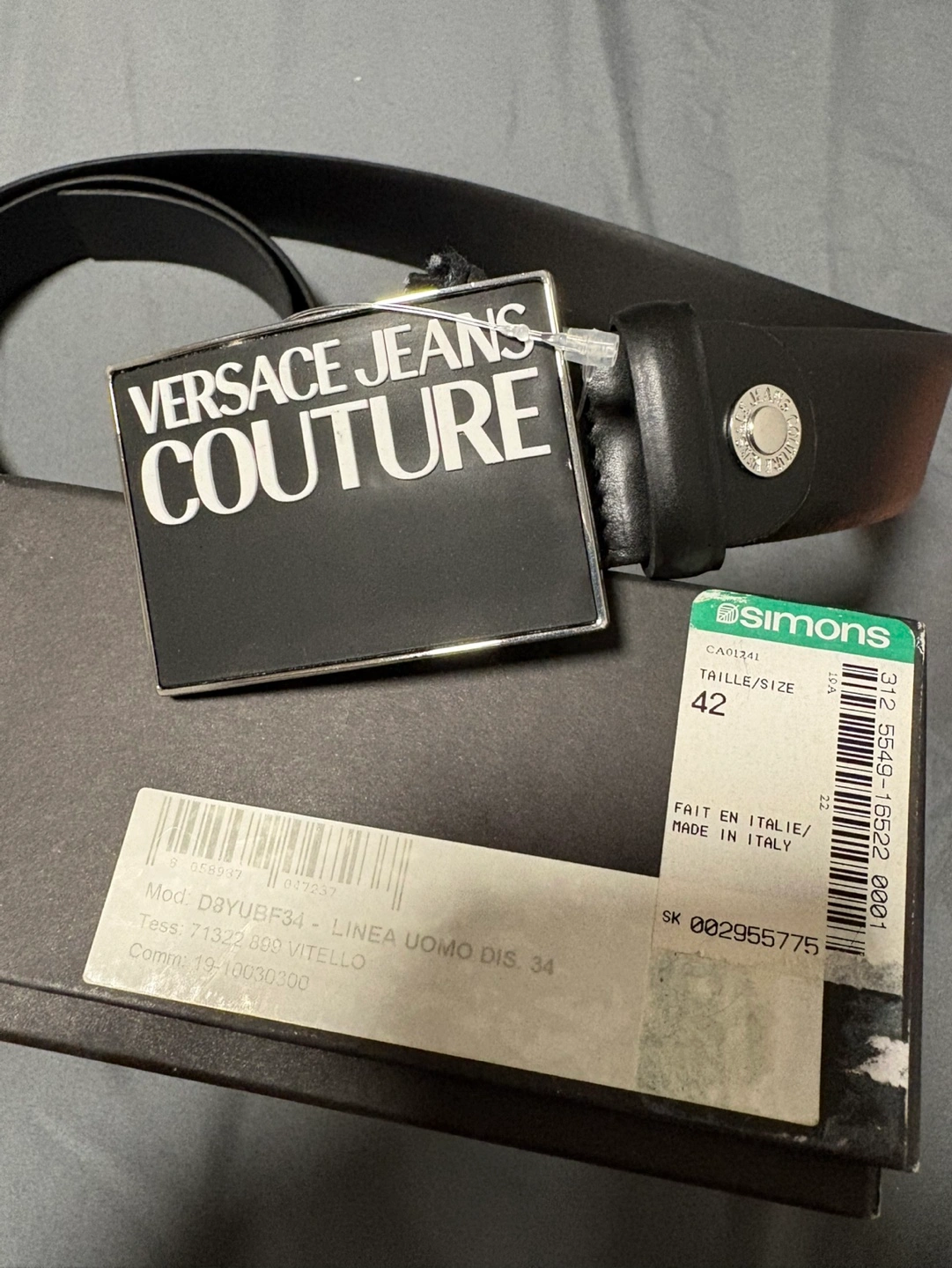 Versace Jeans Couture Logo Designer Leather Belt Black New Size 105/120 42US Brand new in box with tags never worn.