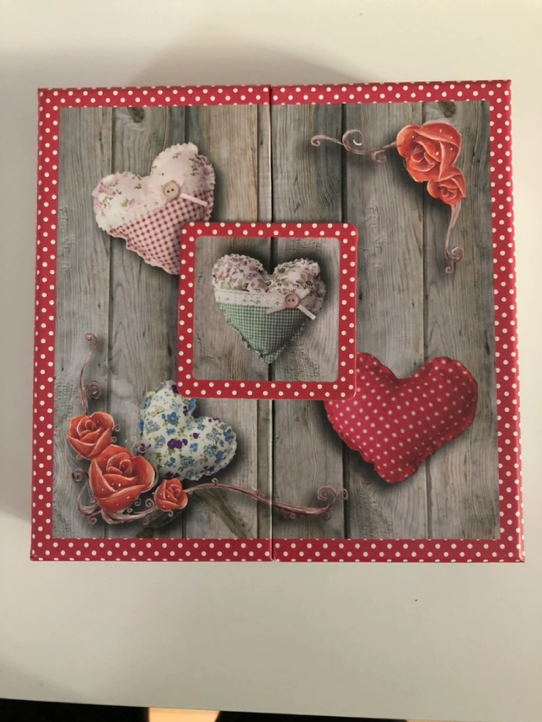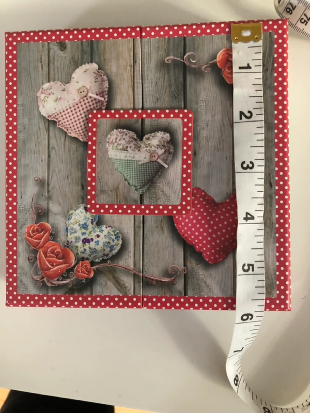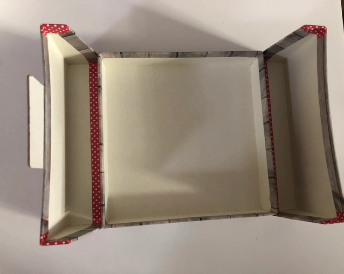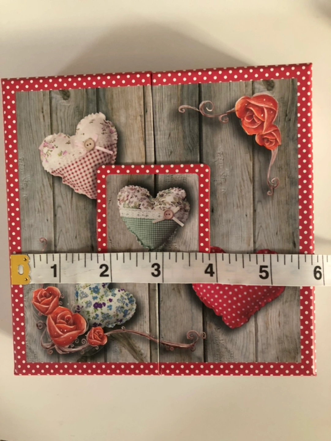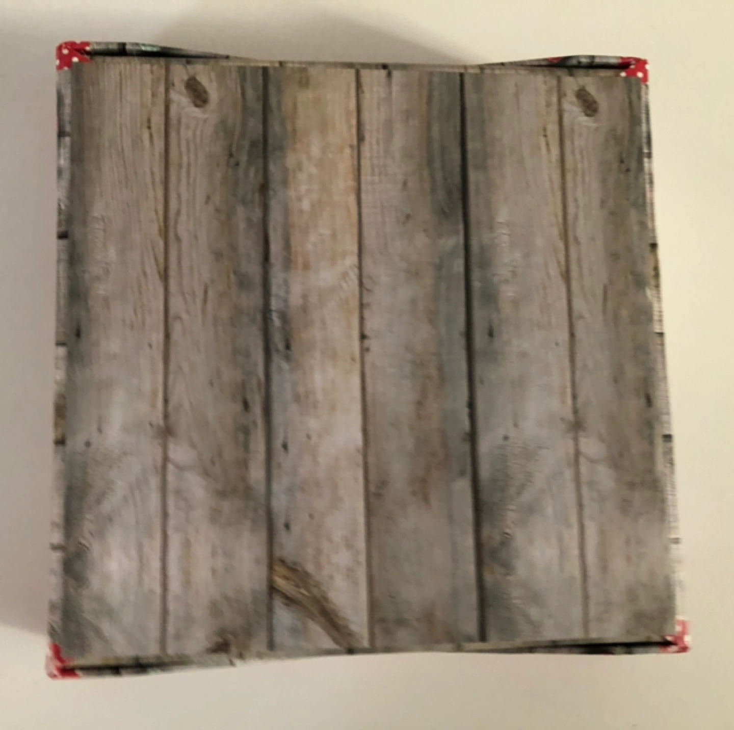 Small, decorative storage box with a wood grain design. The box is approximately 6 inches wide, 6 inches tall, and 3 inches deep. It has a hinged lid and is perfect for organizing small items. Pick up @ midtown, cash only🤗