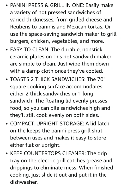 This great multipurpose grill would be an awesome addition to your own kitchen or an excellent gift. Brand new in box - it serves as a 2-in-1 panini press and grill. Easy to clean with durable, nonstick plates. Toasts two thick sandwiches at once as well as meats, veggies , wraps. Compact, upright storage - taking minimal storage space.