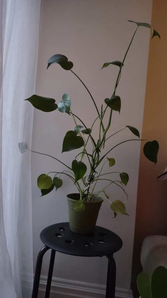 Healthy monstera deliciosa plant in a green pot. The plant is about 3 feet tall and starting to fill out. Will become magnificent next season! It is a beautiful and easy-to-care-for plant.