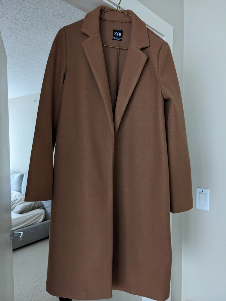 1000+Coat with lapel collar and long sleeves. Colour: Mid-camel