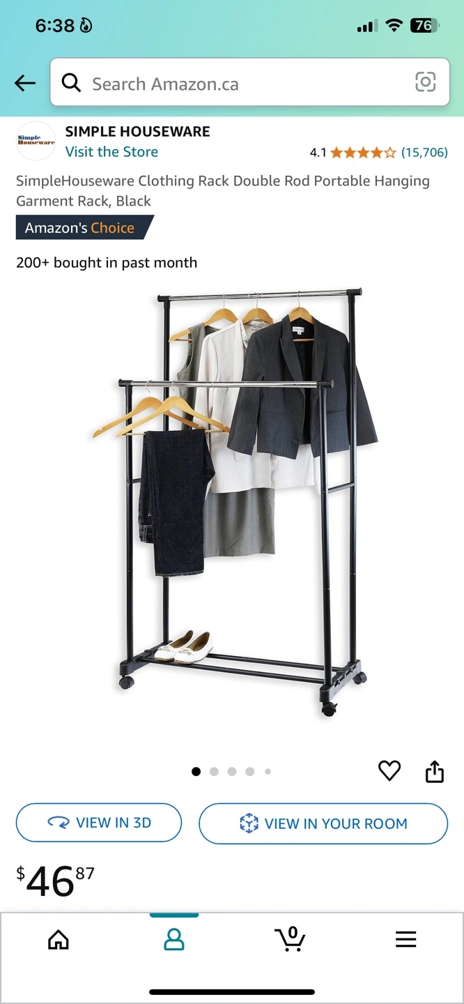 Black clothing rack with two rods and wheels. Portable and great for small spaces. Disassembled and ready to go, meet up or pick up near Erin mills pkwy and burnhamthorpe rd.