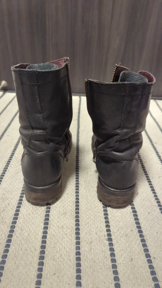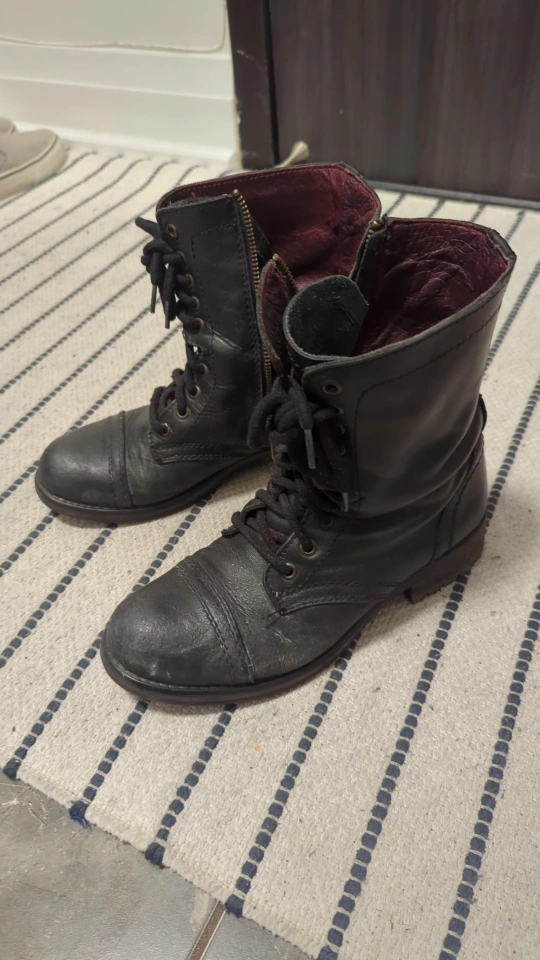 Black leather combat boots with laces and side zipper. Worn well. Leather could use some love.