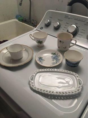 99Fancy porcelain cups and kitchen wear Please take everything for $15 or best offer Major intersections are burnhamthorpe and confederation parkway Mississauga Collingwoods Bone Ester England Villeroy and Boch German Trillium Flower Plant Beautiful Royal adderley Queen Tray Platter Cup Drink Tea Anne I