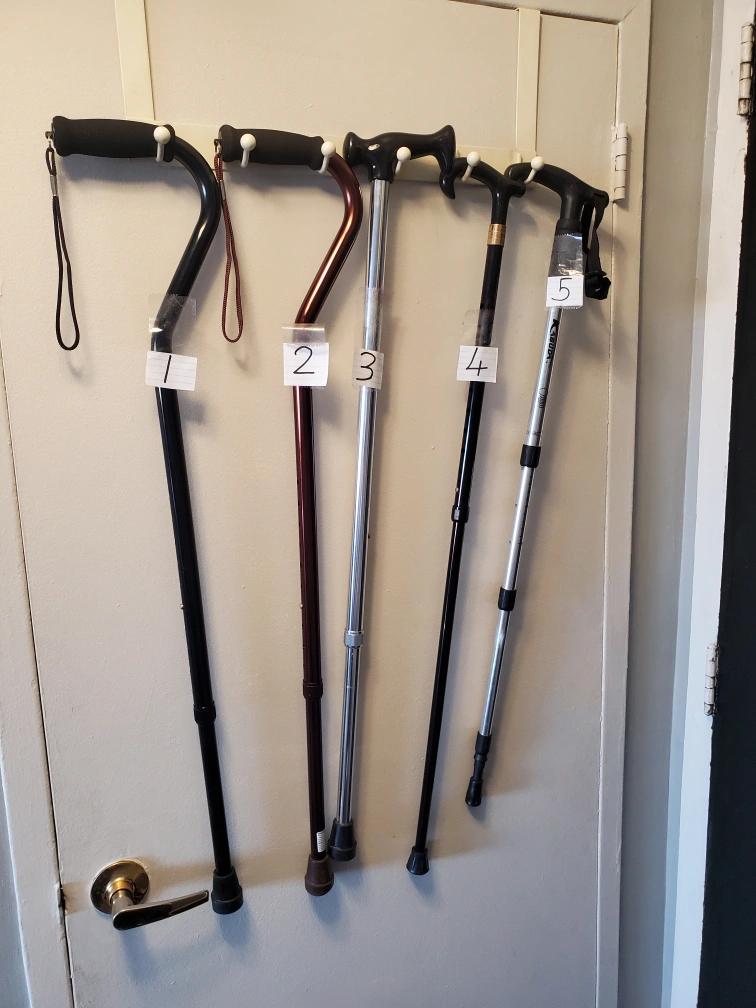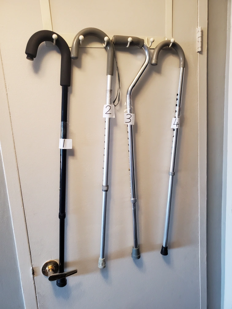 52Five walking sticks, some adjustable, some with a curved handle. One stick is labelled "Royal National Institute for the Blind" and is 85 cm long. Very good condition no delivery. price for walking Sticks is from $15 to $20 each & White Cane $30 each only cash price firm. Walking Sticks with 4 Legs $35 only cash price firm. Second page number 1 Walking Sticks was sold today, i have the others I have and app Facebook and app Kijjijji. Location Cawthra and Lakeshore Mississauga.