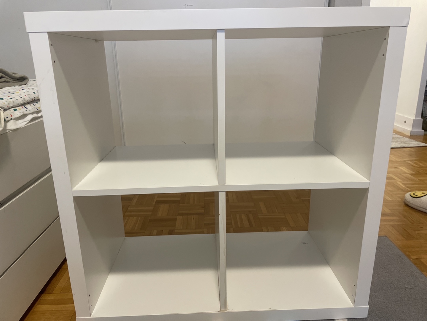 IKEA white shelf unit.