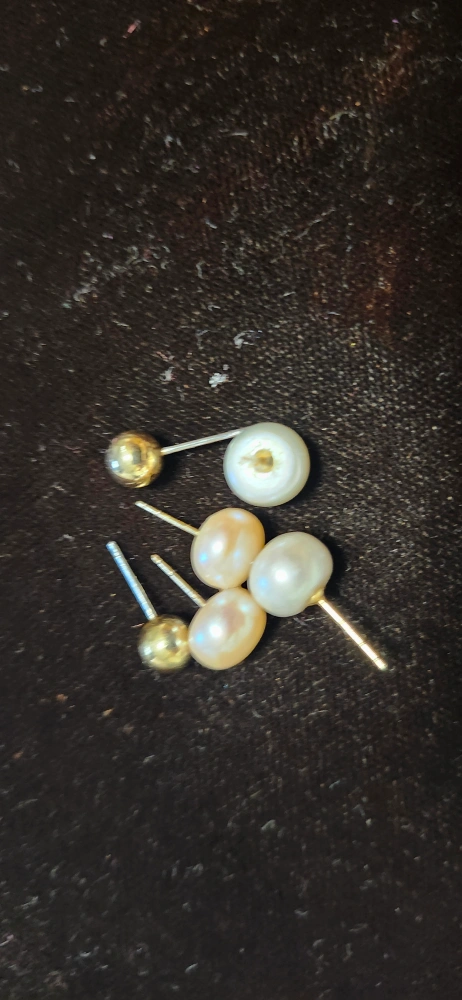 2 pairs Pearl Stud and 1 pair of 10 K earrings