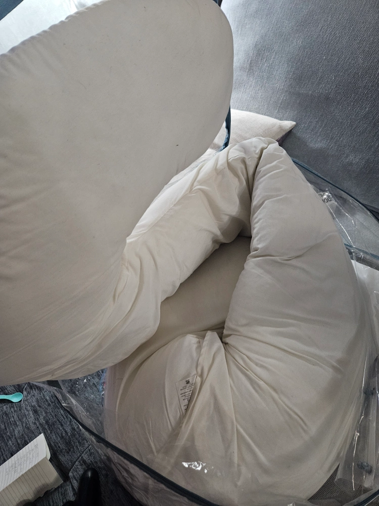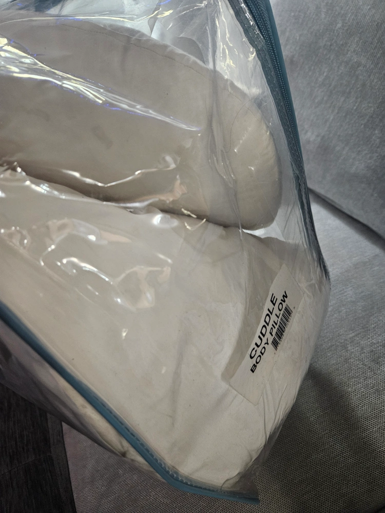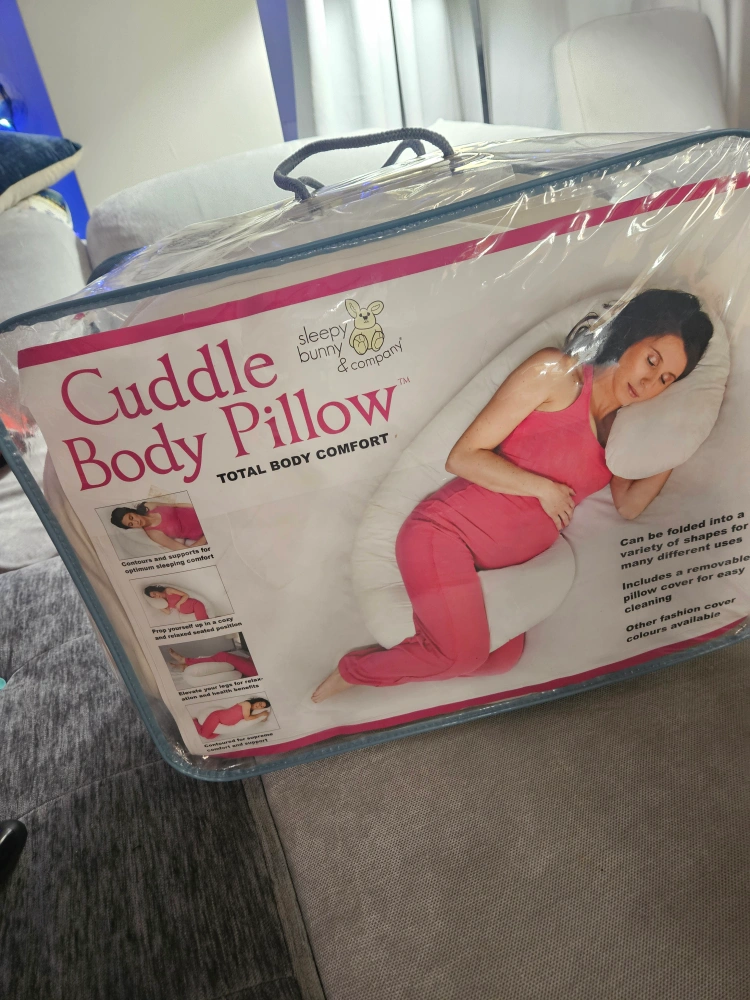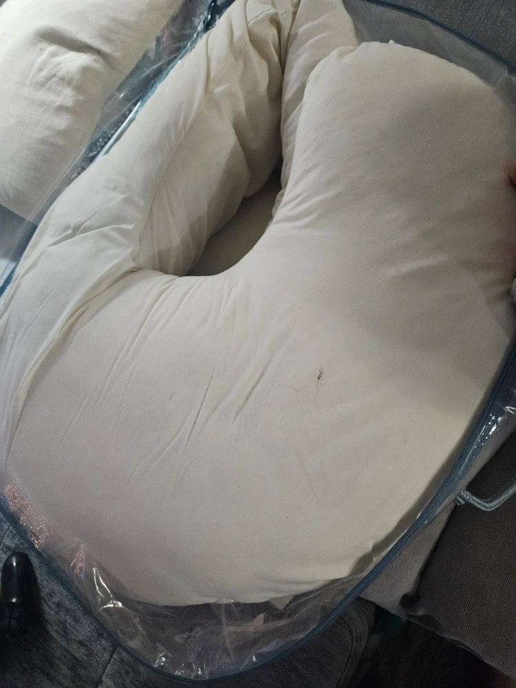 FREE White body pillow in a zippered carrying case. Great for pregnancy pillow and breastfeeding support. some lints but well maintained.