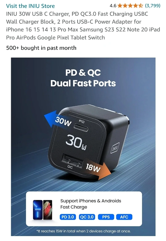 30W USB-C(pd) and USB-A(qc) Wall Charger