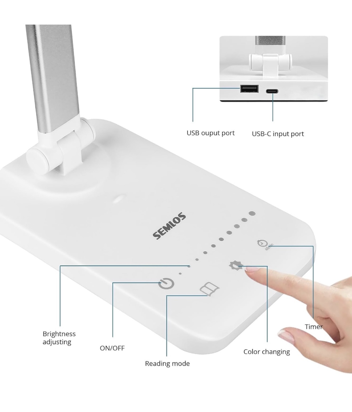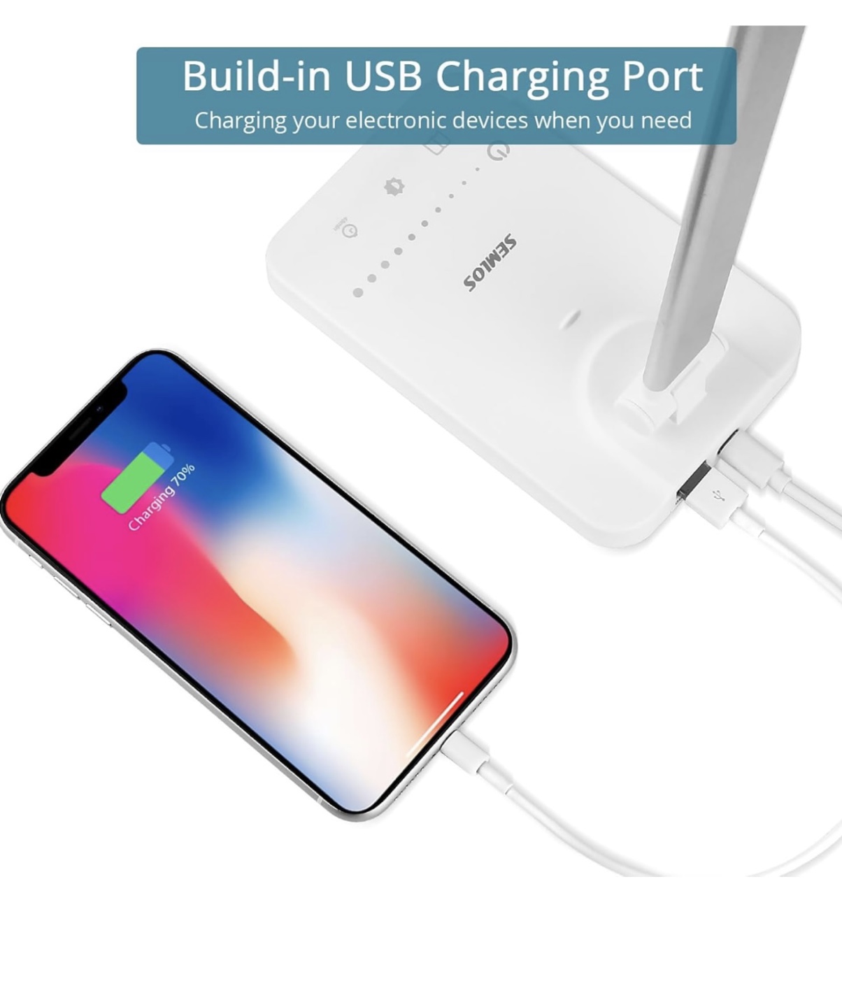 Semlos LED desk lamp. Foldable and adjustable with USB charging port. Bought new from Amazon but don’t need. Never used and NIB.