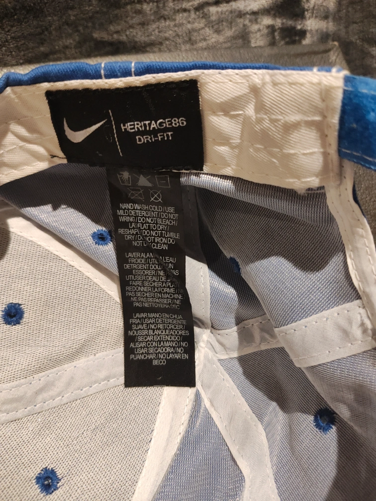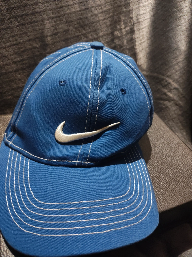 137Blue baseball cap with white stitching. Features the Nike logo and Dri-Fit technology.