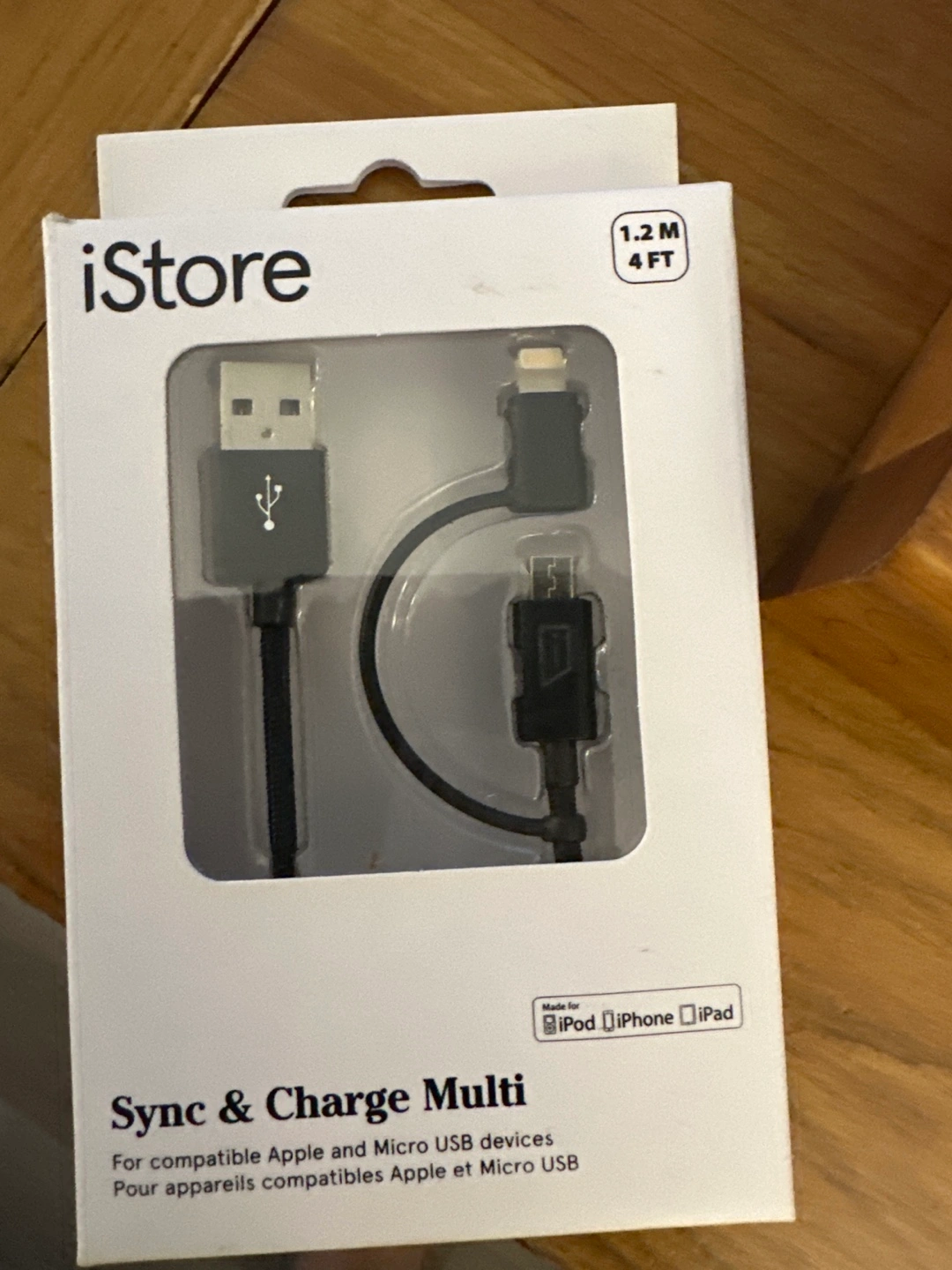 281.2 M (4 ft) cable. For compatible Apple and Micro USB devices.