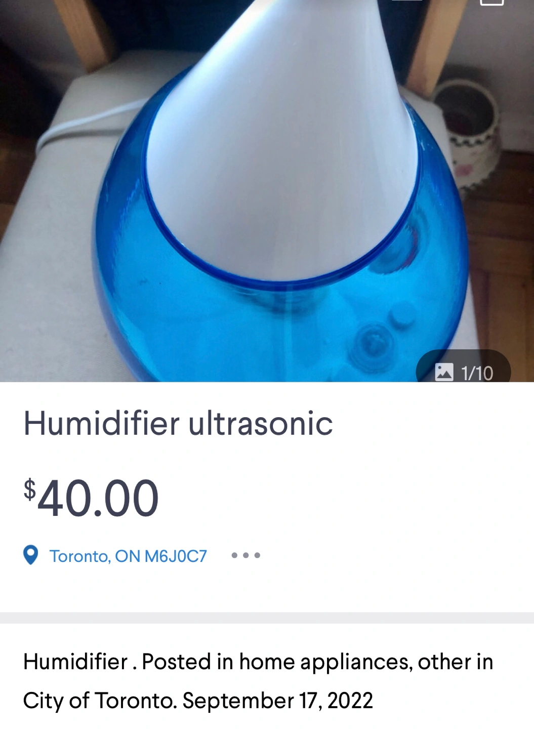 Buy & SellUltrasonic humidifierUltrasonic humidifier$29Like new cannot use for health issues 40 dollars firmConditionLike newWHERE TO MEET38 Lisgar StView MapSELLERverifiedHBCorktown13525 reviews0 chats·0 favorites·45 viewsSEND CHAT TO SELLERHi HB! I’m interested in your listing.Hi HB! I’m interested in your listing.Get the Karrot app to chatSign In to chat