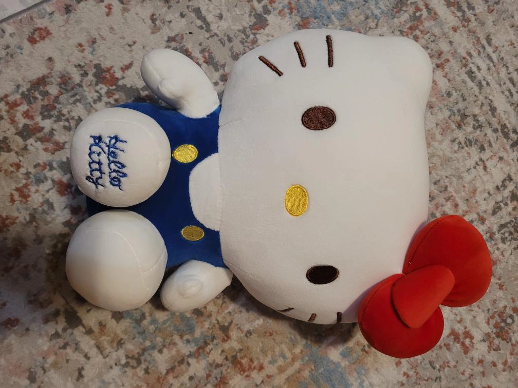 Large Hello Kitty plush toy, wearing blue overalls. Soft and cuddly. from official sanrio :) around 25cm high i think