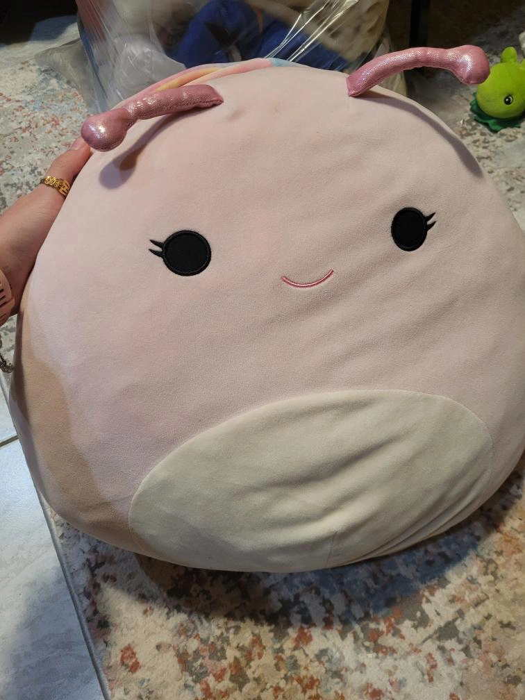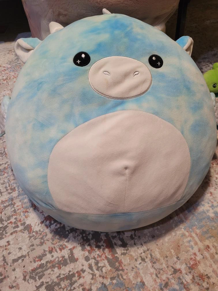 41Three Squishmallows: a pink snail, grey shark, and blue dragon and Winnie the Pooh and Mickey mouse Tsum tsum. All are large size. $15 each squishmallow $10 mickey tsum tsum