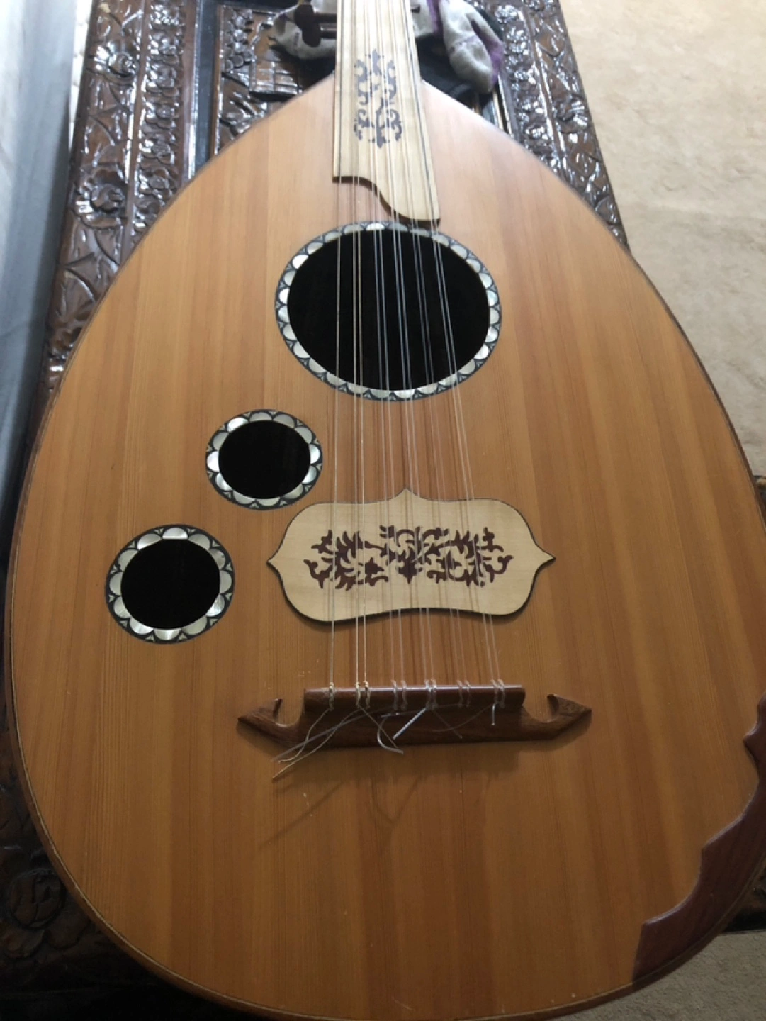 Arabic stringed instrument with intricate inlay and mother-of-pearl accents.