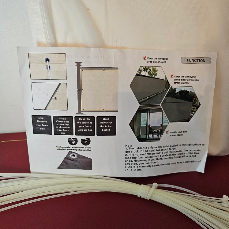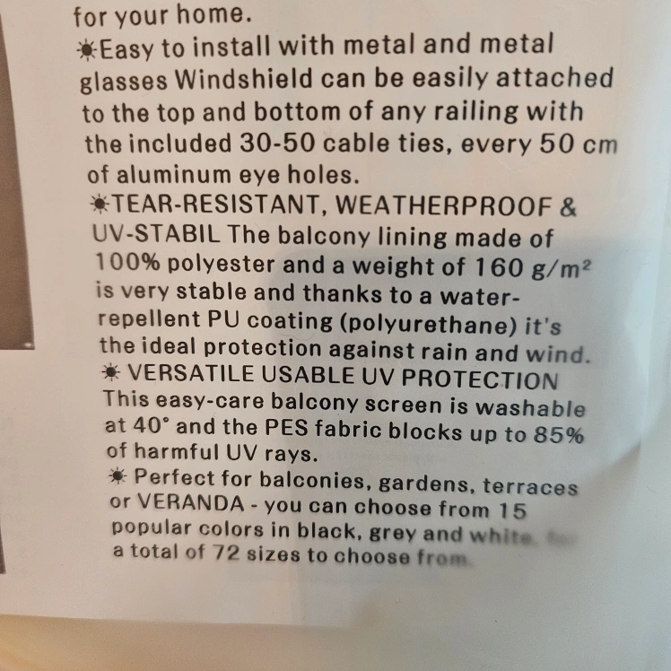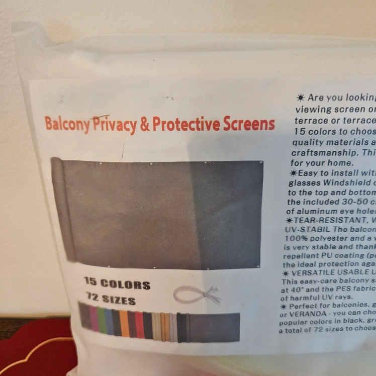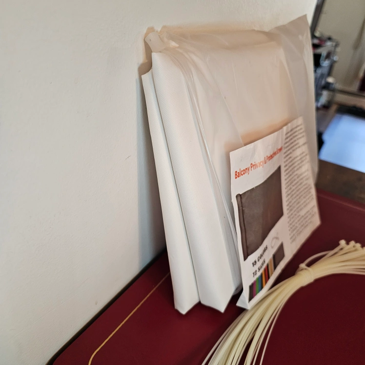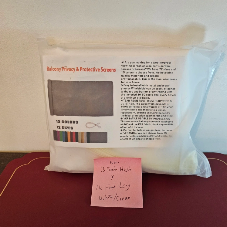 New balcony privacy screen. White/cream in colour. 3ft high x 16ft long. Includes cable ties for installation.