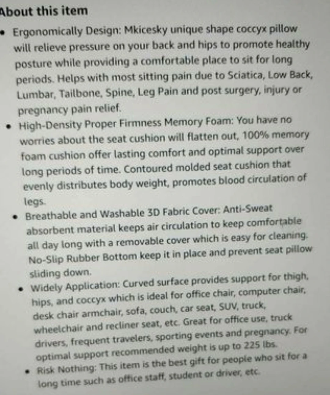 Mkicesky support for back/leg/hip and sit bone pain
