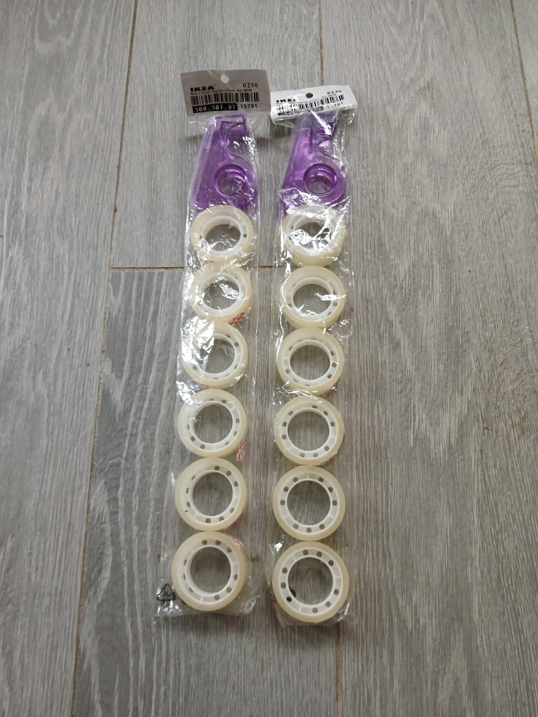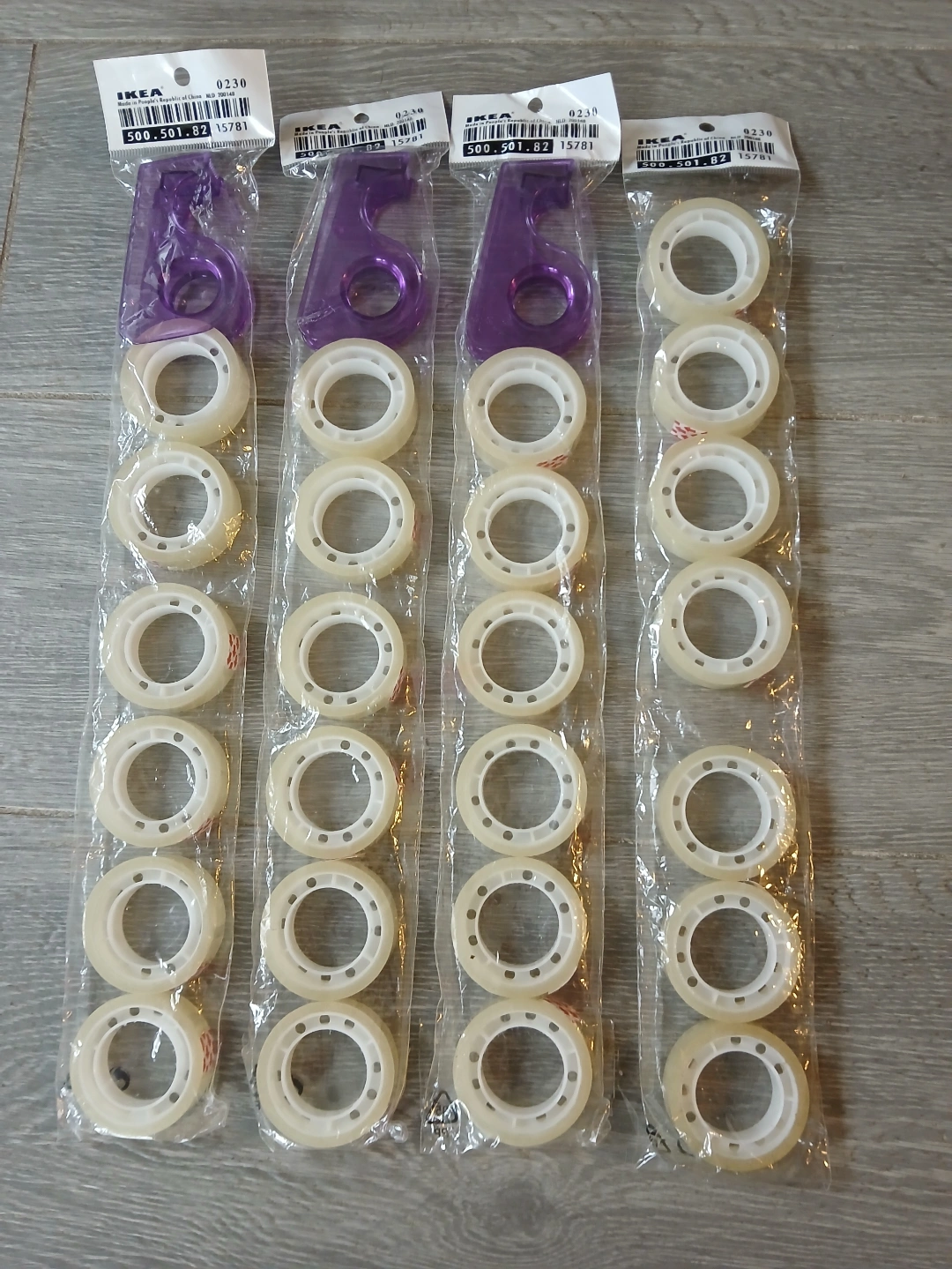 ✅️3 packages of 6 rolls per package with 1 purple dispenser in each package. 1 package of 7 rolls of tape.