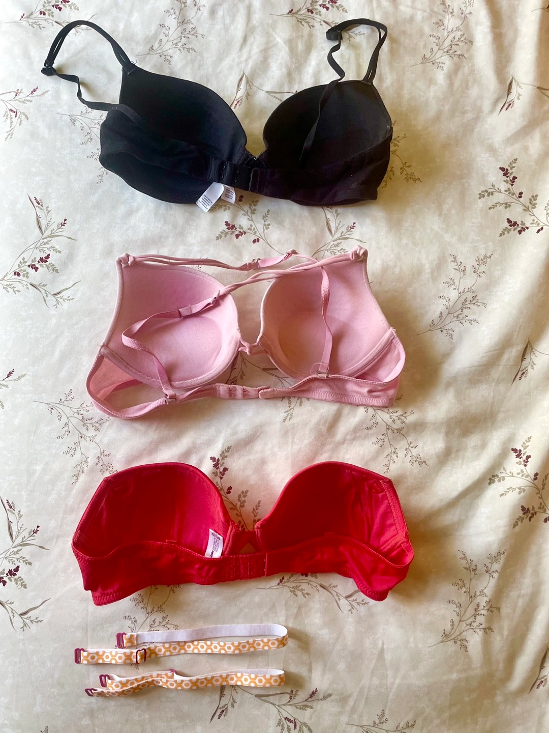 + set of extra straps, straps on all three bras are removable and can be worn many ways