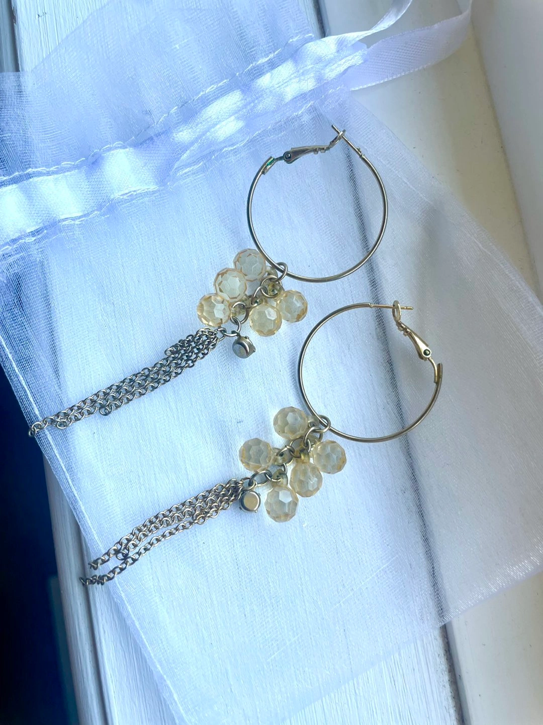 Gold hoops dangling crystal beads