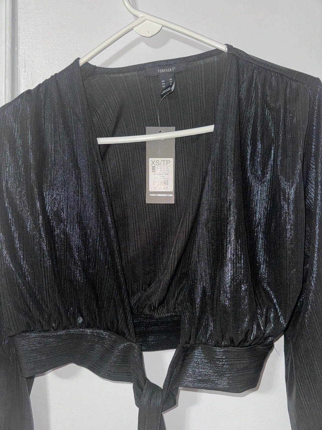 Long sleeve, tie front, metallic, size XS/TP Can fit S