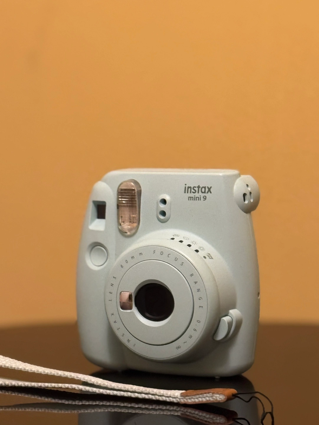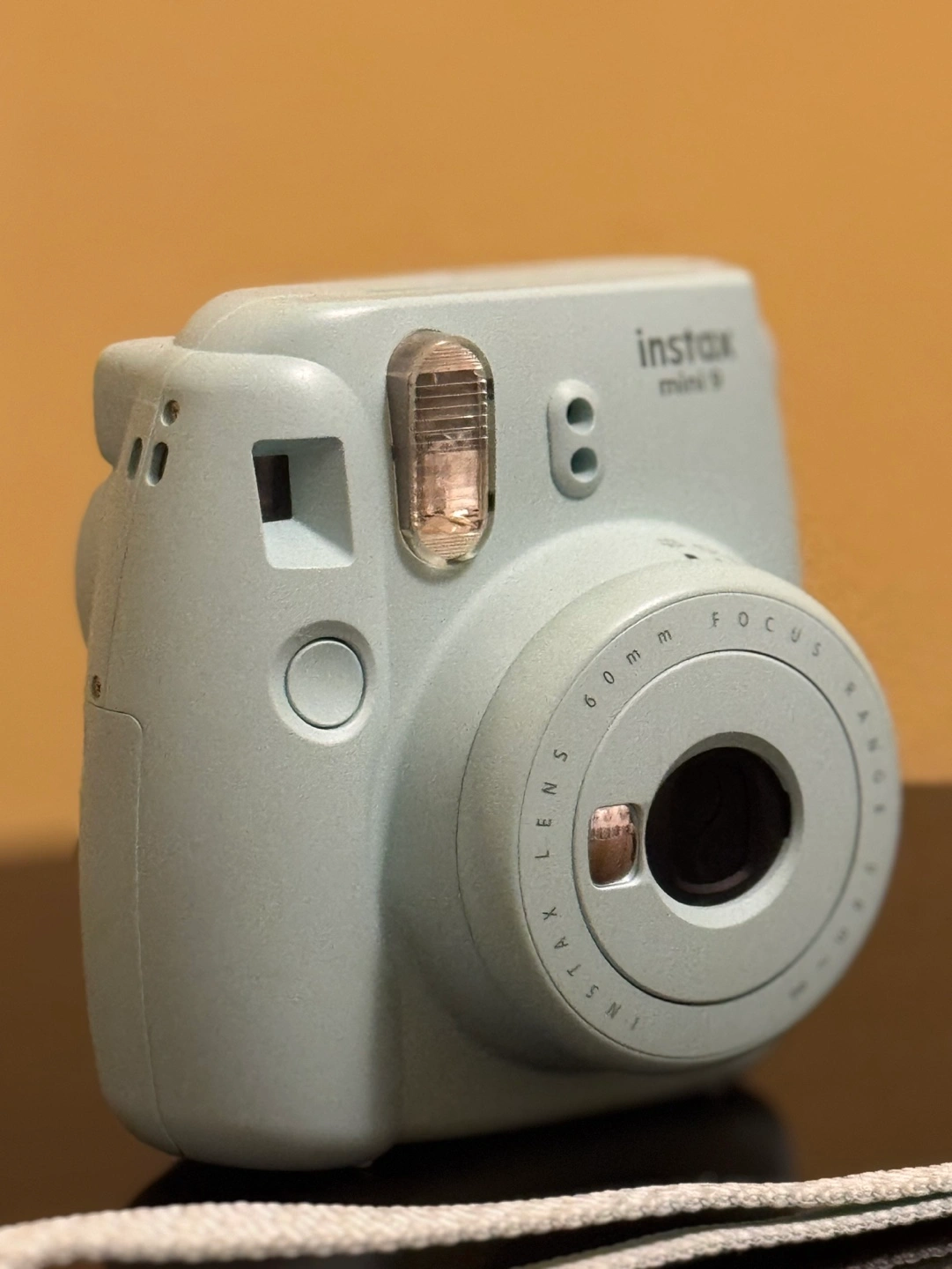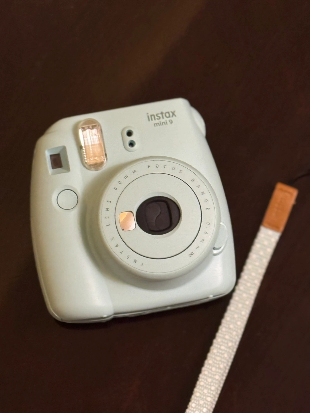 Mint green Instax Mini 9 camera.