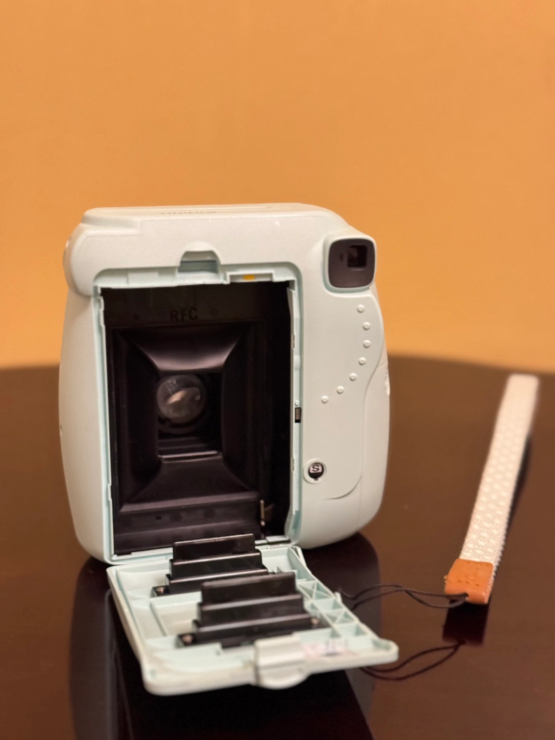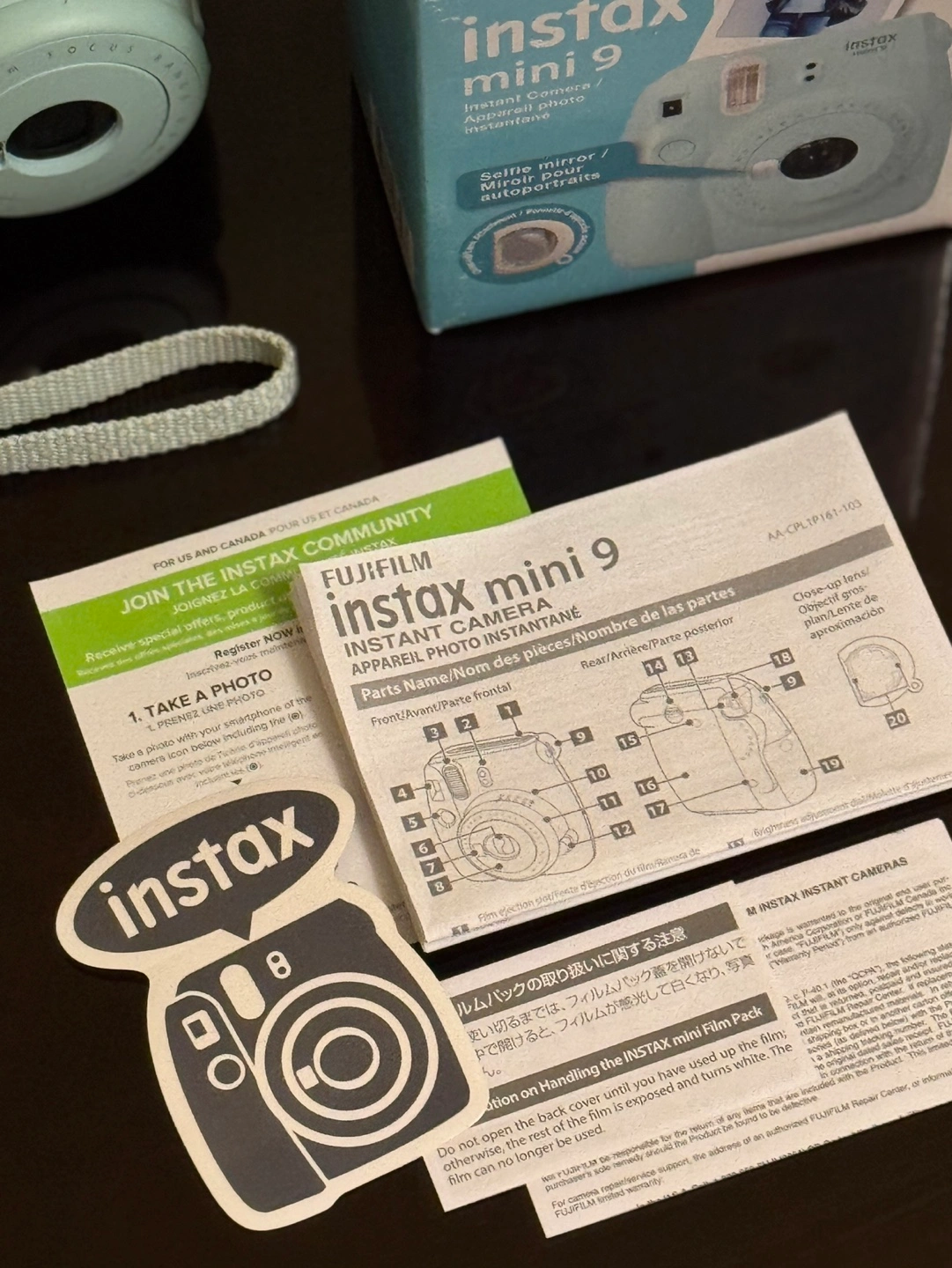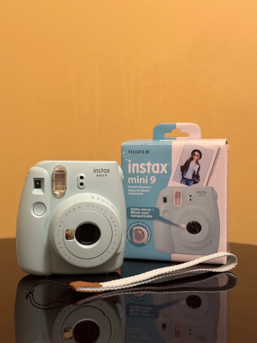Mint green Instax Mini 9 camera.