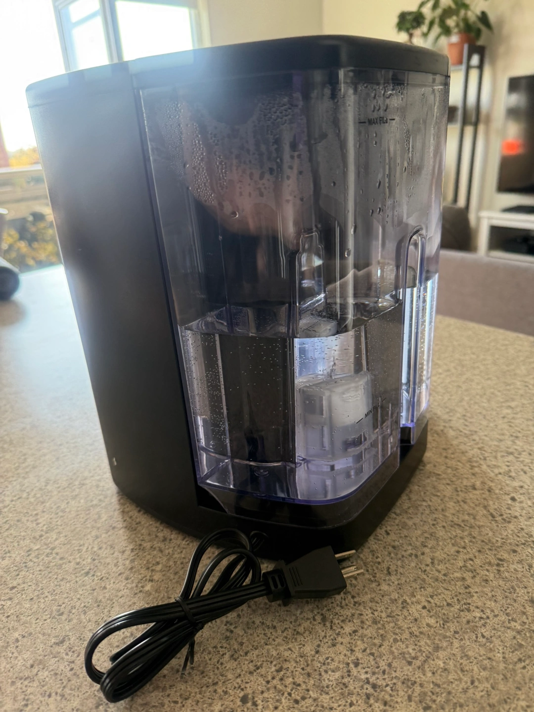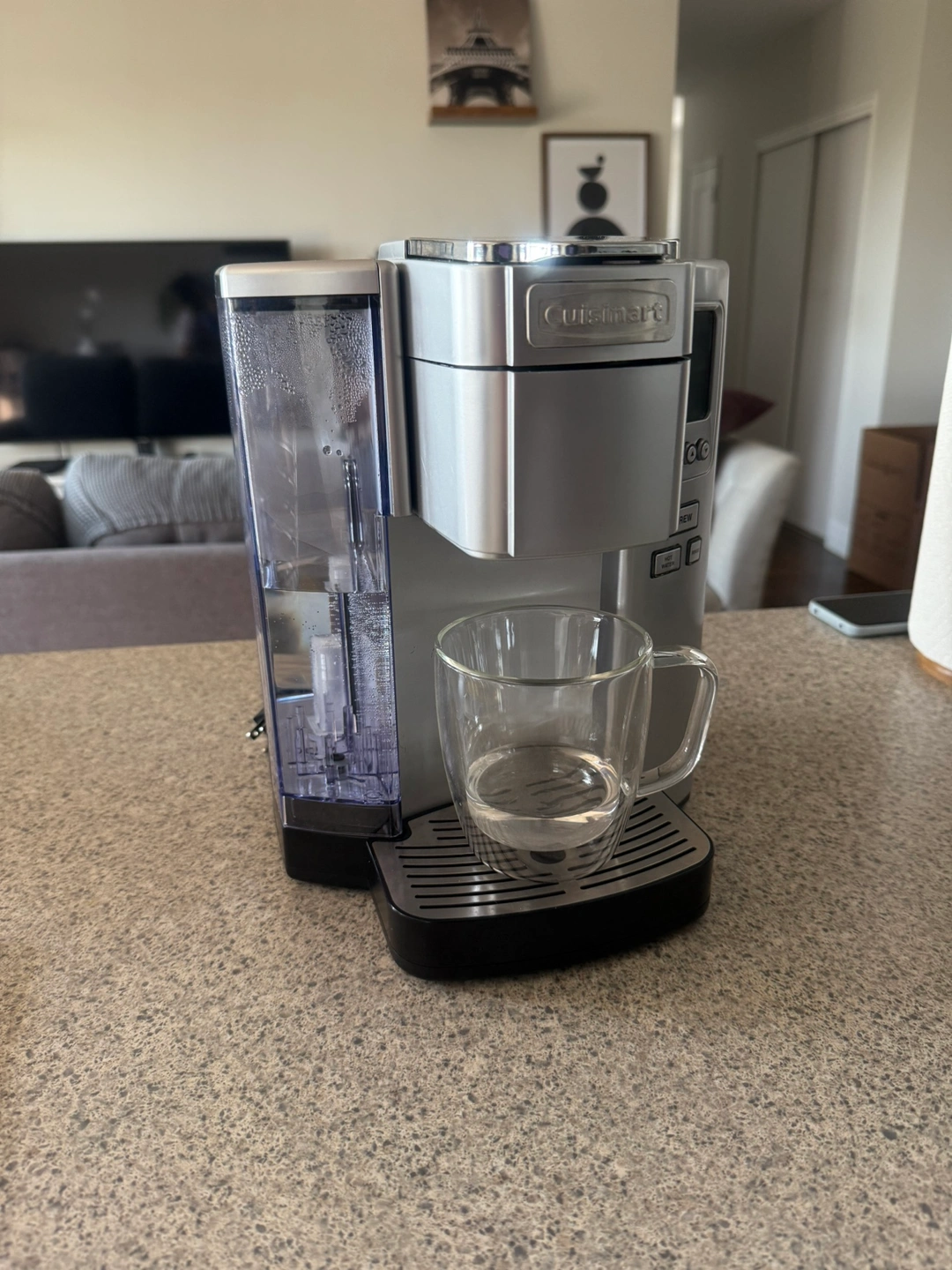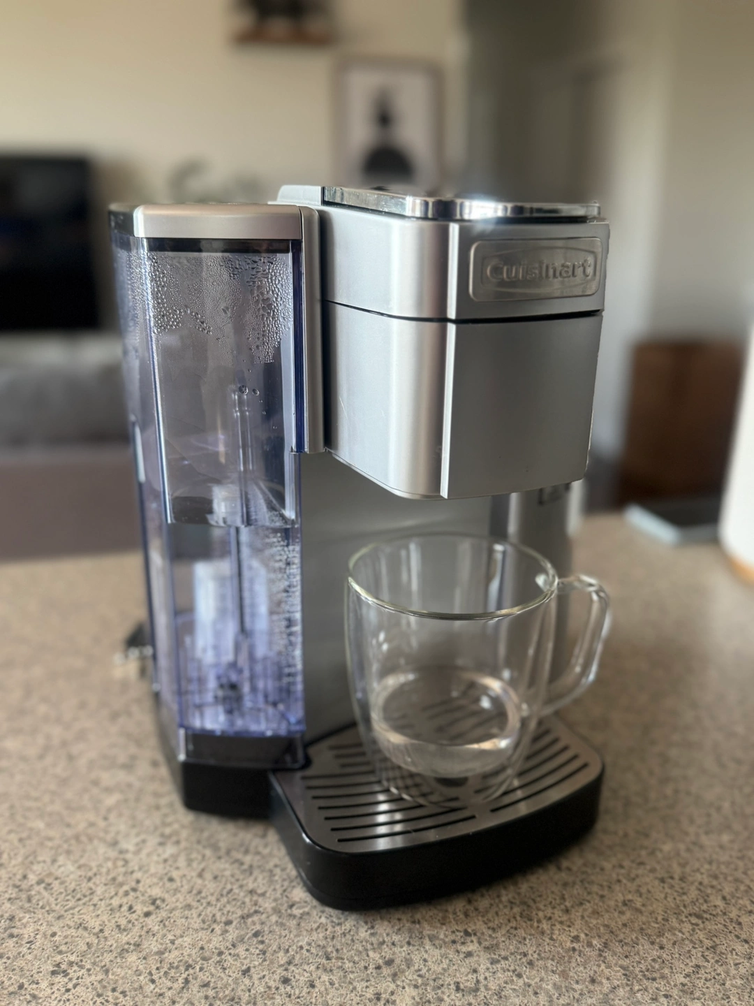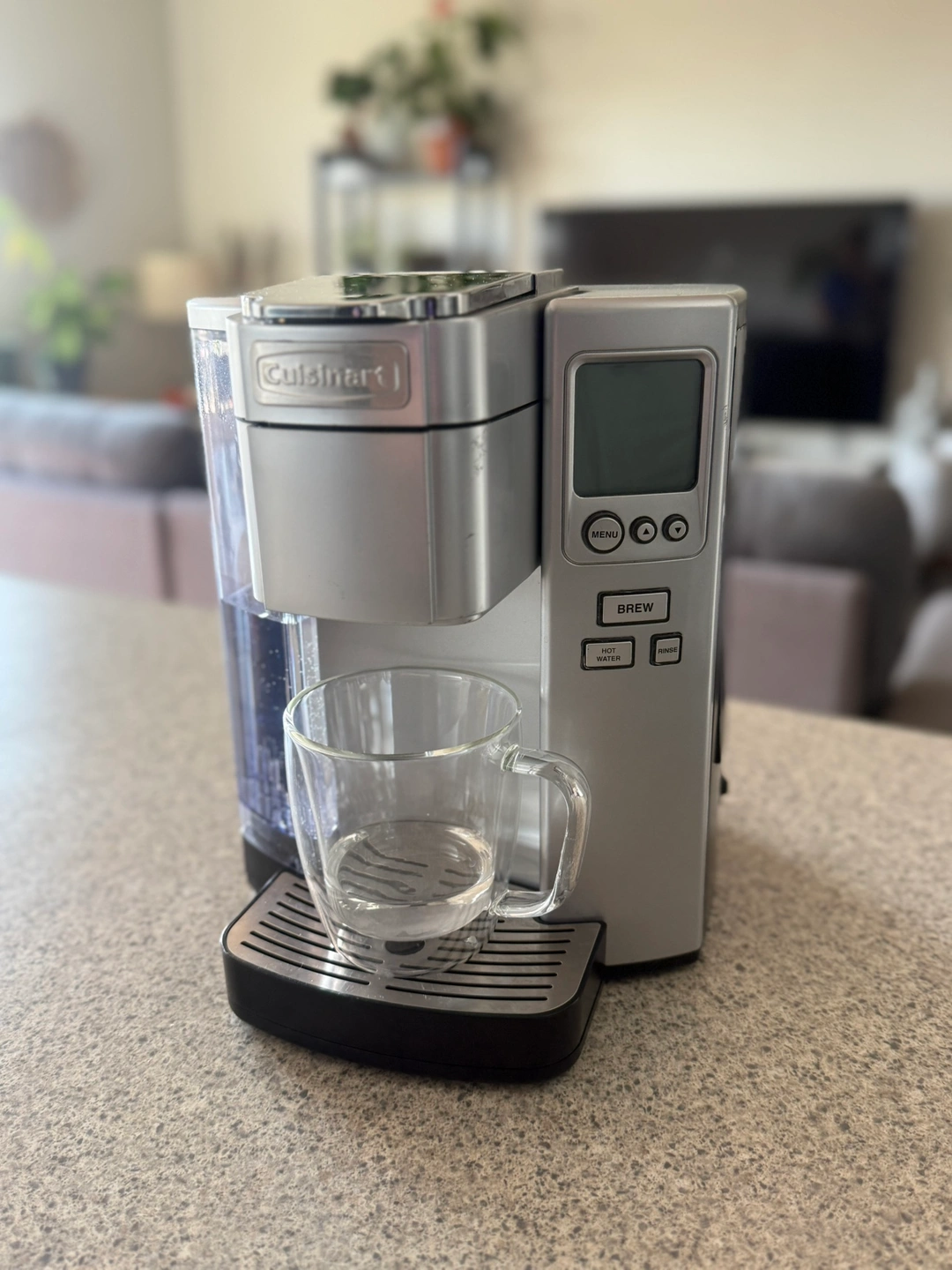 Single serve coffee maker. Includes a water reservoir, with 2 removable filter holder and a drip tray.