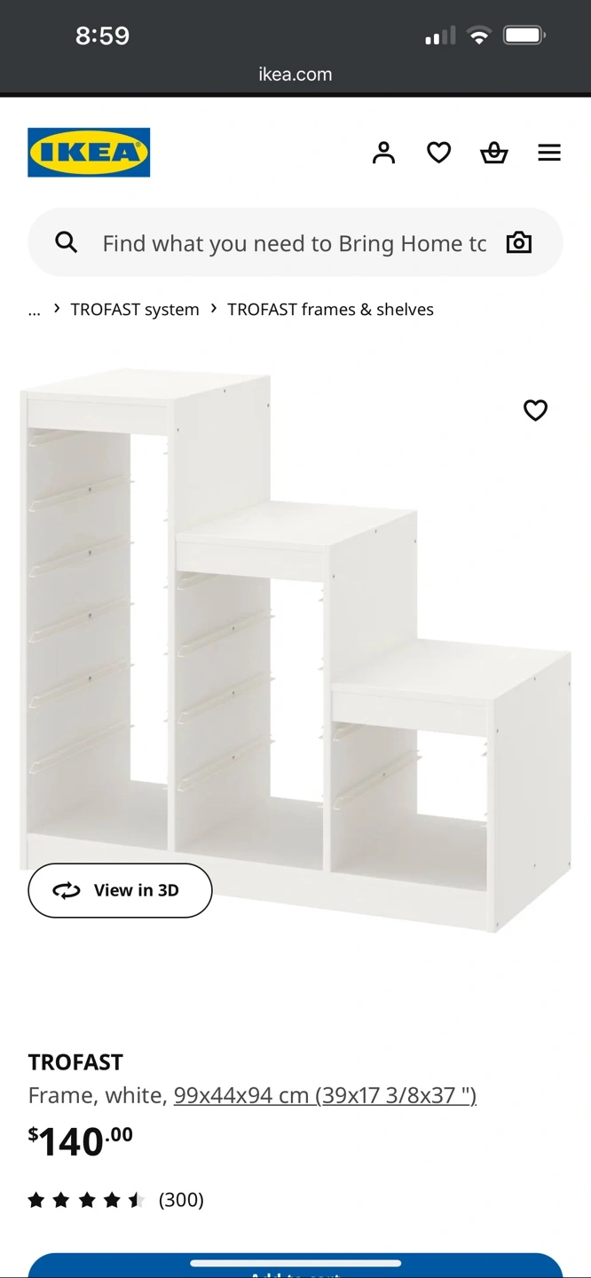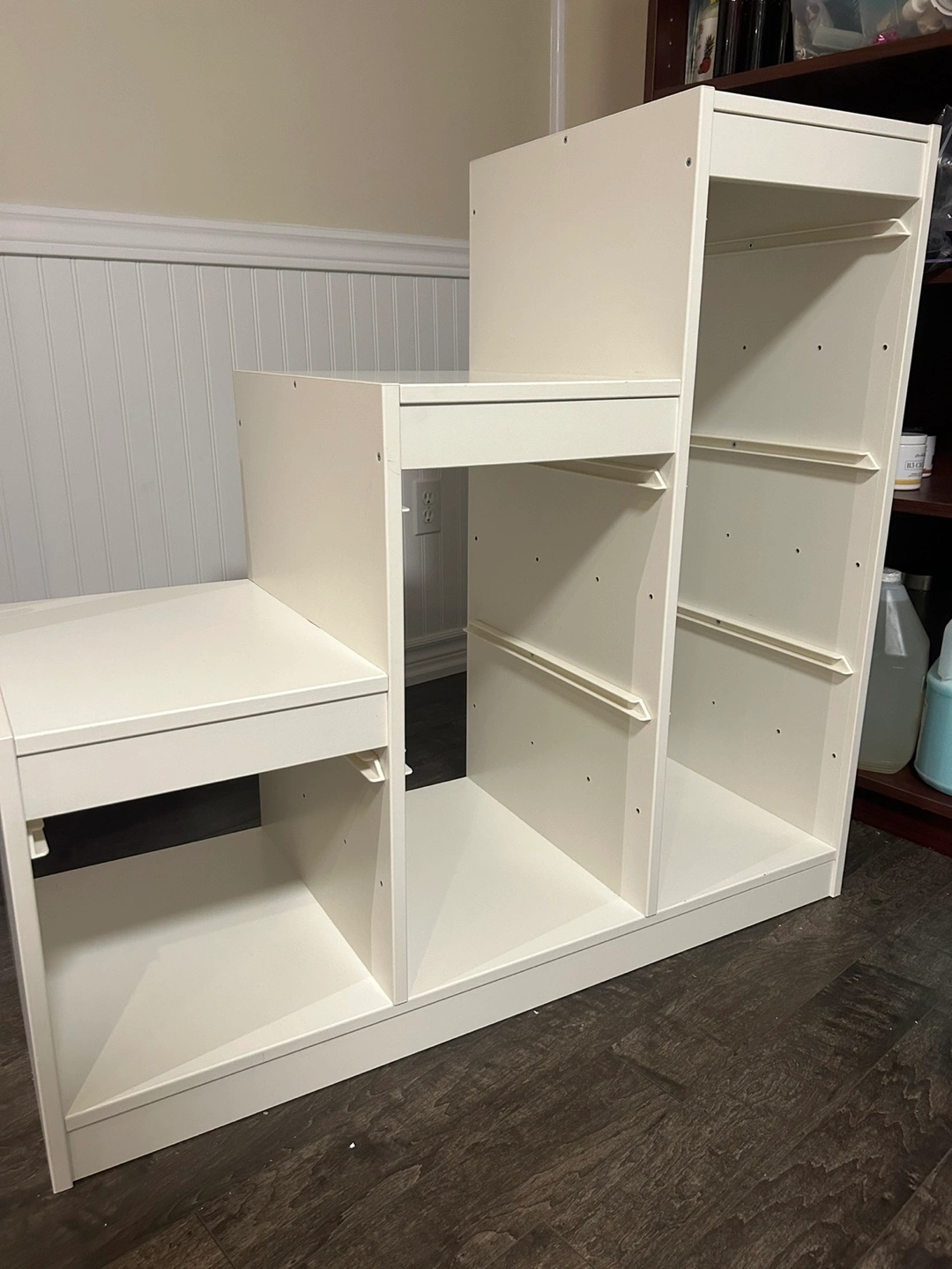 White frame, No bins (Bins are sold via IKEA Can be purchased through IKEA (https://www.ikea.com/ca/en/p/trofast-storage-box-turquoise-40464031/))