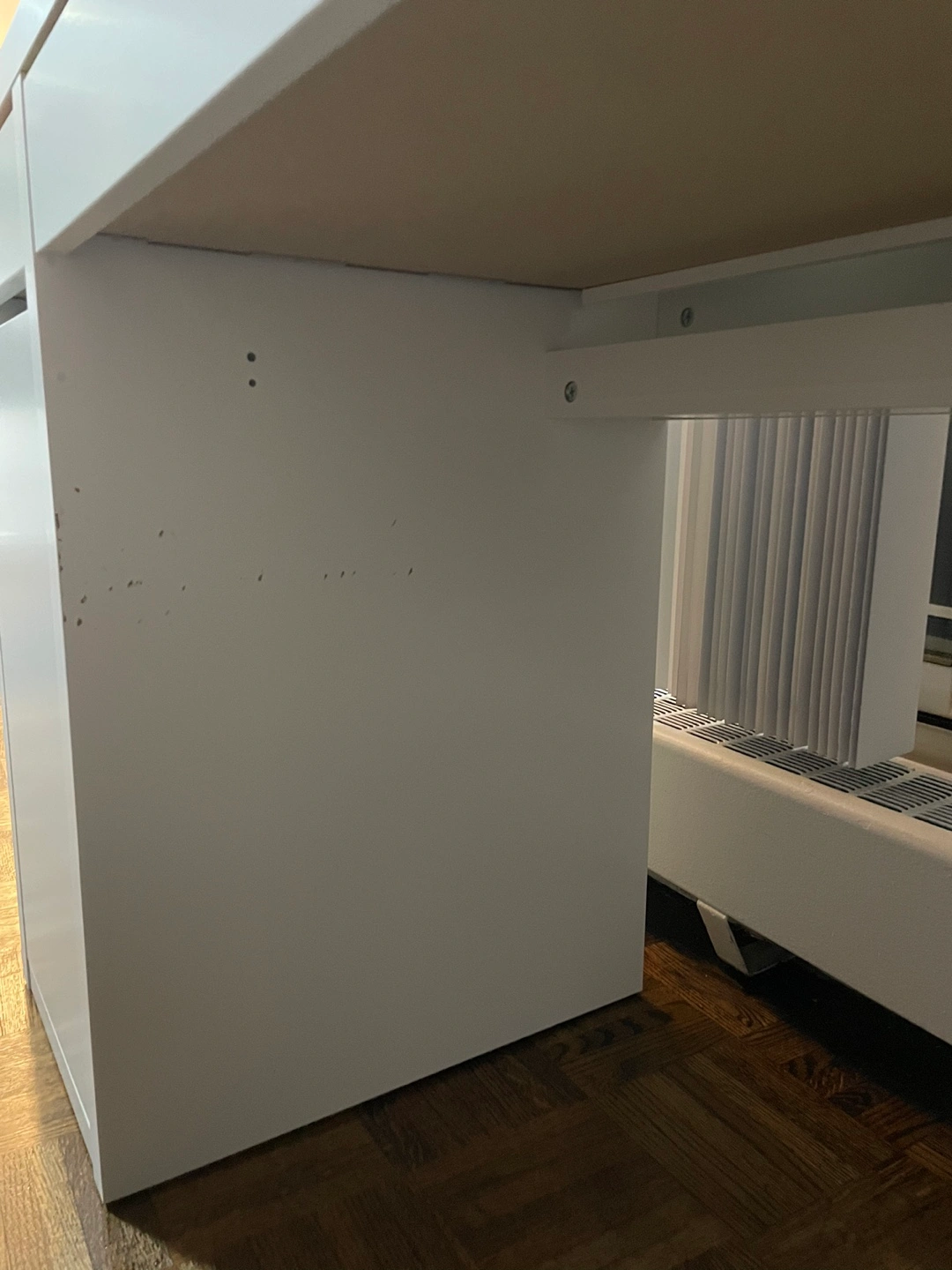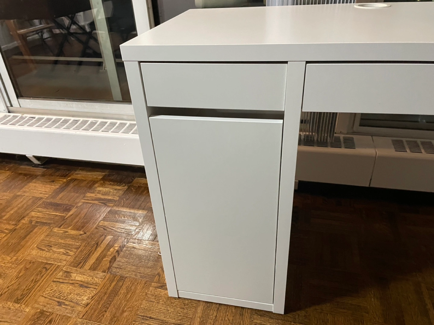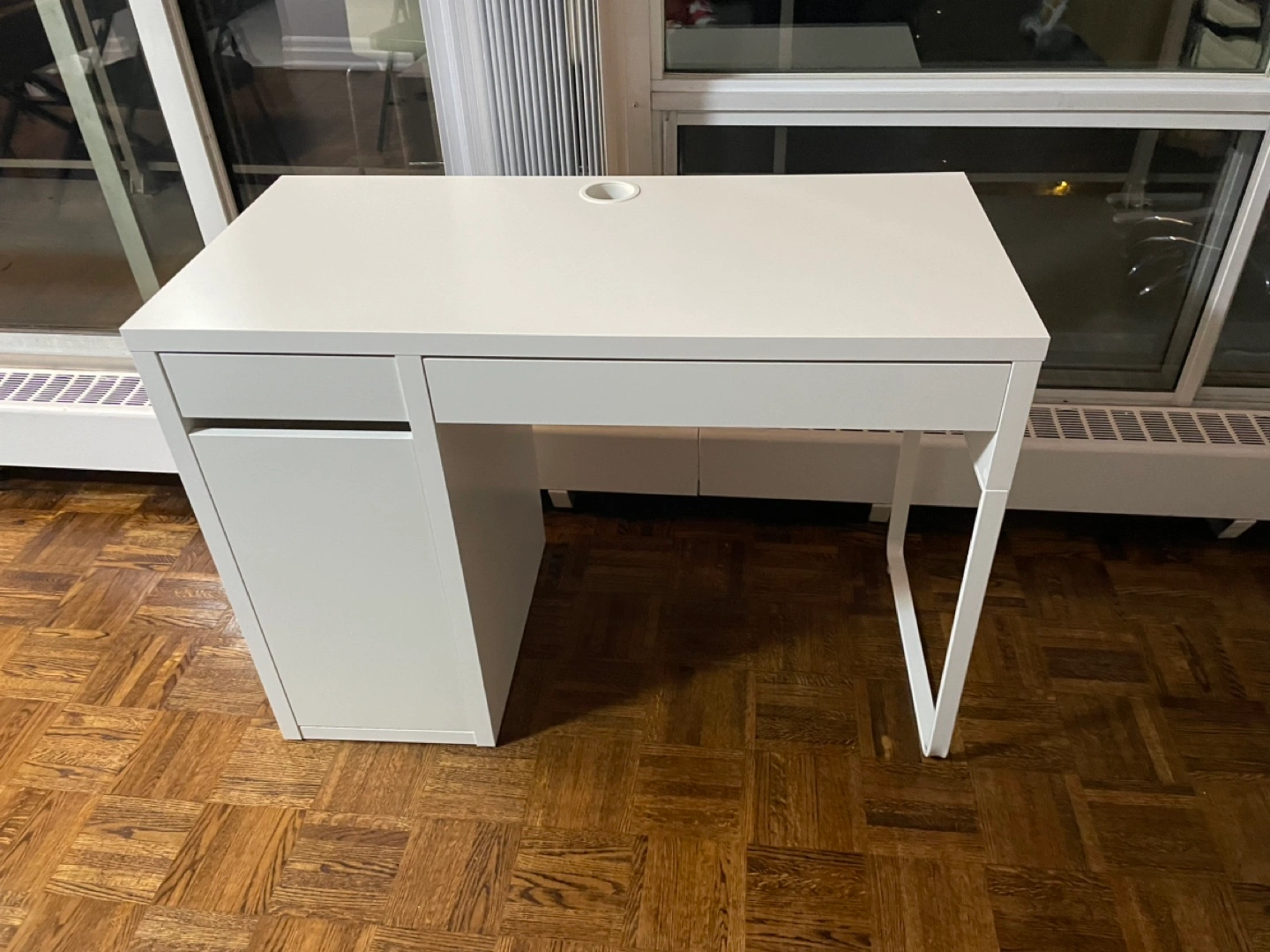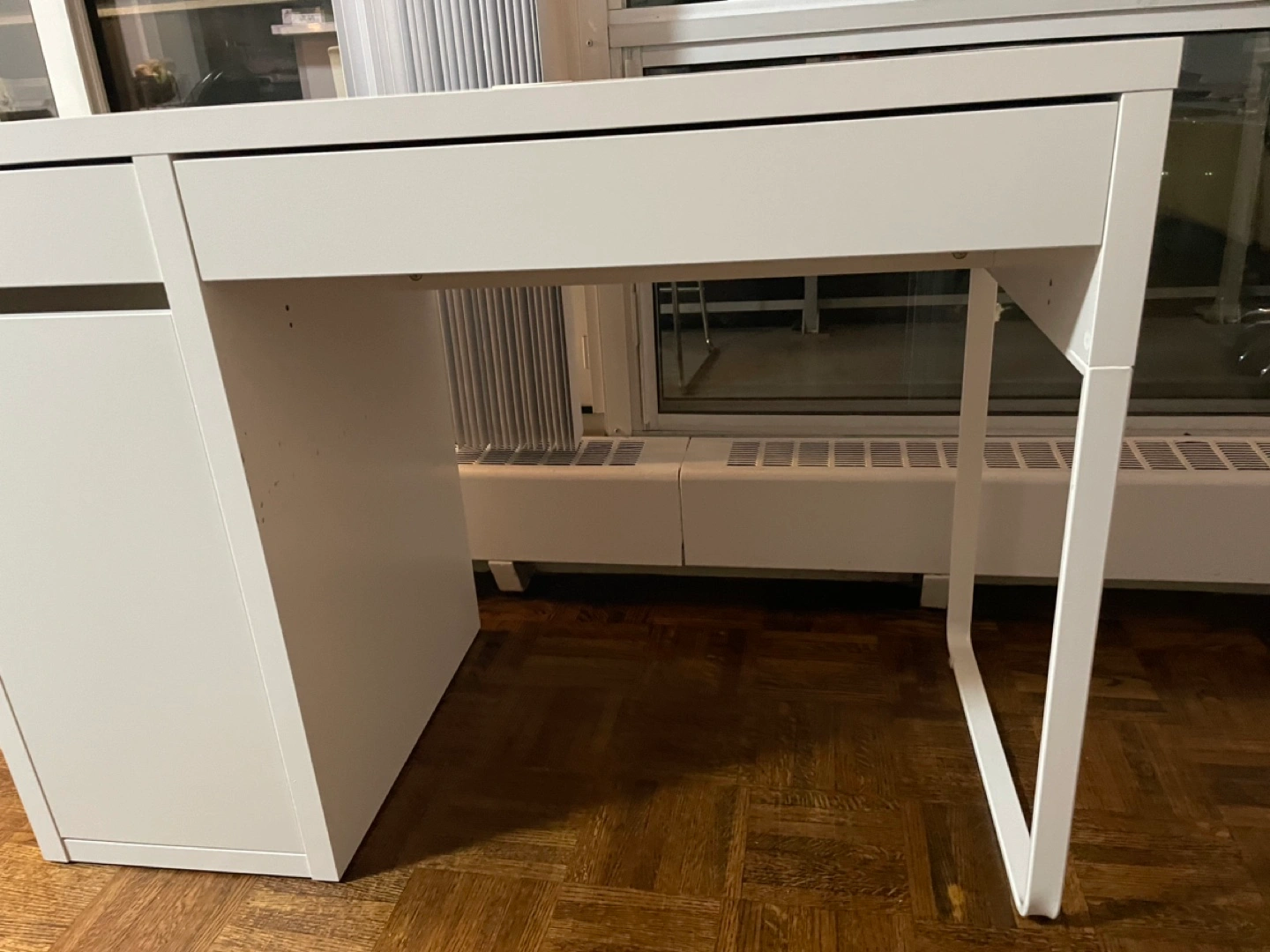 IKEA desk used for 1 year but has scratches on one of the interior sides due to my chair. Dimension 105cmx50cm