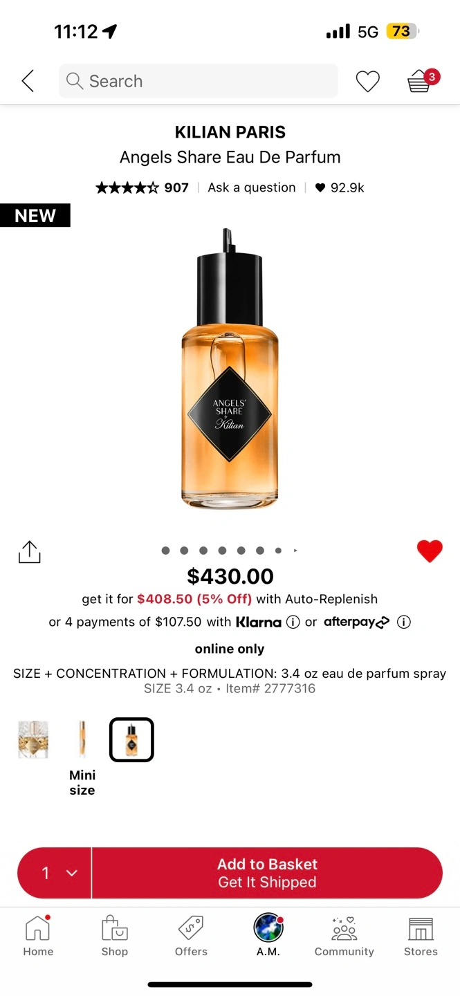 1000+Eau de Parfum, Refill. 100ml - 3.4 fl. oz. Warm & Spicy unisex fragrance Retails for $430 plus tax at Sephora