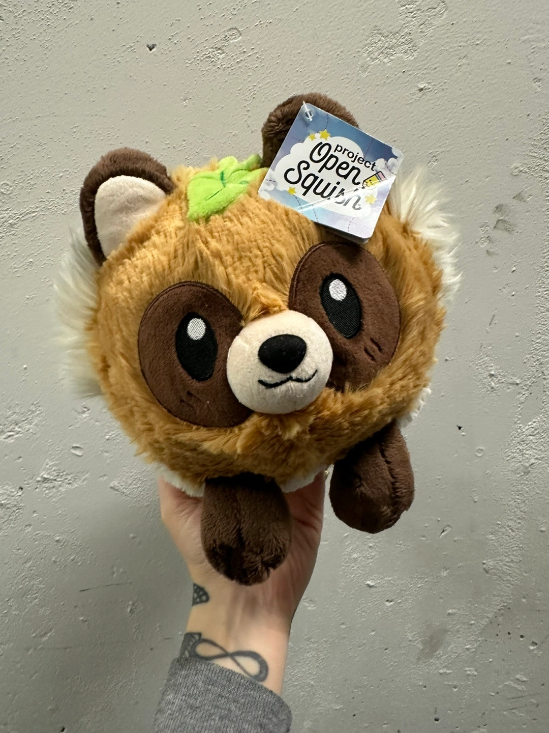 1000+Soft and cuddly raccoon plush with a long tail. Great for cuddling or decorating.