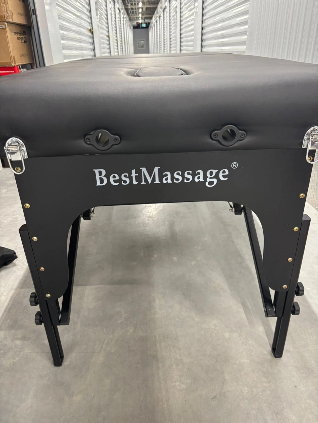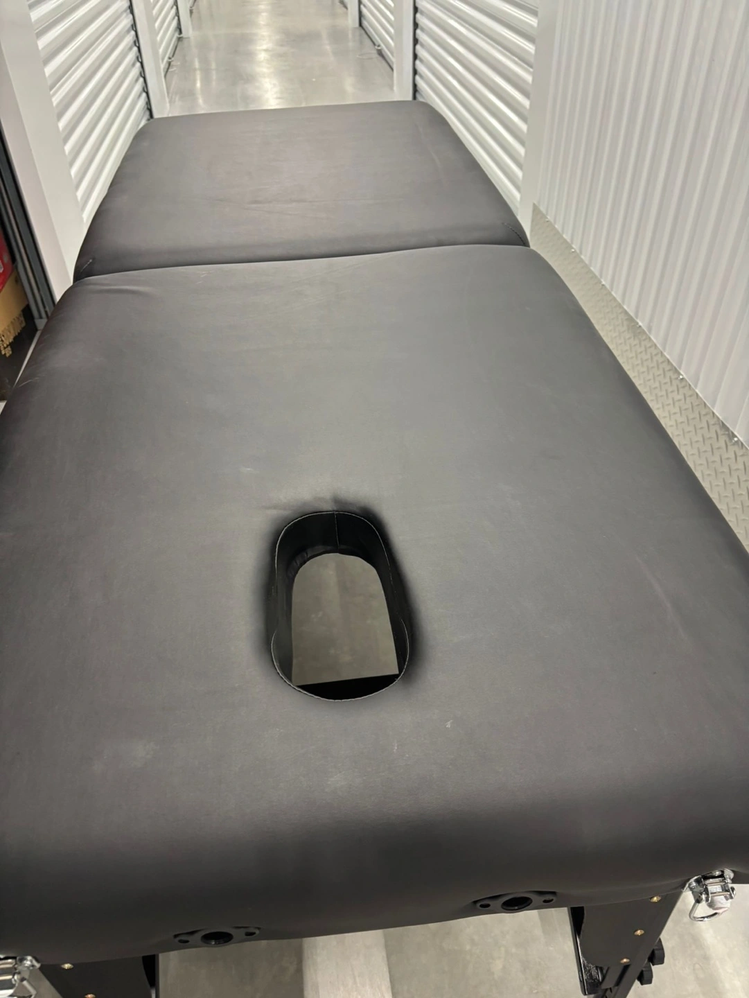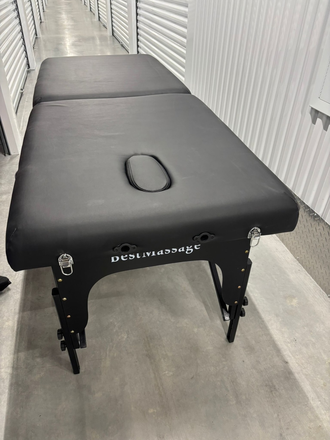 Black carrying case for a folding massage table. Also good for doing eyelashes, any aesthetic’s Includes a zippered pouch. Has adjustable shoulder strap. 76”L X 30”W, Deluxe model,